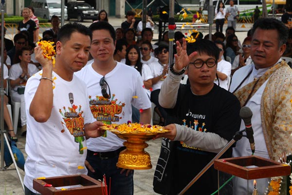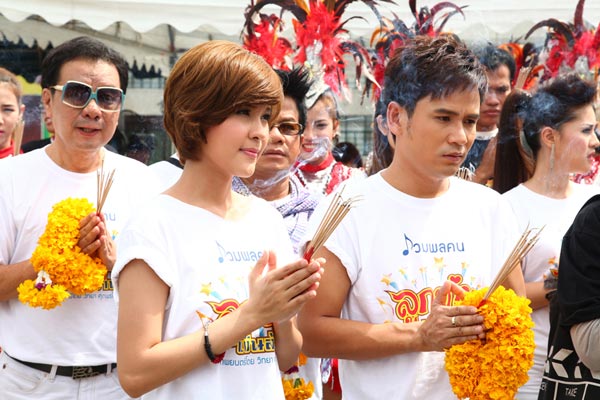 ขณะที่ฝั่งลานคนเมือง ศาลาว่าการกรุงเทพมหานคร ก็คึกคักไปด้วยซุปตาร์นักร้องลูกทุ่งที่ทยอยเดินทางกันมาร่วมพิธีบวงสรวงอย่างไม่ขาดสาย อาทิ ไผ่ พงศธร, หญิงลี ศรีชุมพล, มนต์สิทธิ์ คำสร้อย,สุนารี ราชสีมา, ดาว มยุรี, กุ้ง สุทธิราช วงศ์เทวัญ, จิ้งหรีดขาว วงศ์เทวัญ, บิว กัลยาณี, ทศพล หิมพานต์, รุ่ง สุริยา, คัทลียา มารศรี, เอกราช สุวรรณภูมิ, ปีเตอร์ โมดิฟาย, อั้ม นันทิยา, ไชโย ธนวัฒน์, วิรดา วงศ์เทวัญ, แดน บุรีรัมย์ ร่วมด้วย วงดนตรีซุปเปอร์สตาร์ประชานิเวศ และนักแสดงสมทบอีกมากมาย