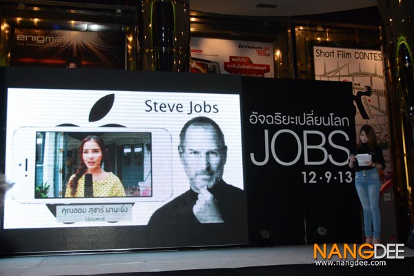 ภายในงานได้สาวสวยเจ้าแม่แห่งวงการไอทีอย่าง ซี ฉัตรปวีณ์ ตรีชัชวาลวงศ์ ทำหน้าที่พิธีกรดำเนินรายการ พร้อมกันนี้ยังได้ หนุ่ย พงศ์สุข พิรัญพฤกษ์ เจ้าพ่อวงการที พร้อมกันนี้ยังได้ แม๊ค สุนาถ ธนสารอักษร แฟนพันธุ์แท้ สตีฟ จ็อบส์พร้อมด้วยคุณฐิติกร อุษยาพร เจ้าหน้าที่บริหารบริษัทเอ็มพิคเจอร์ส มาร่วมพูดคุยถึงภาพยนตร์เรื่องดังกล่าว