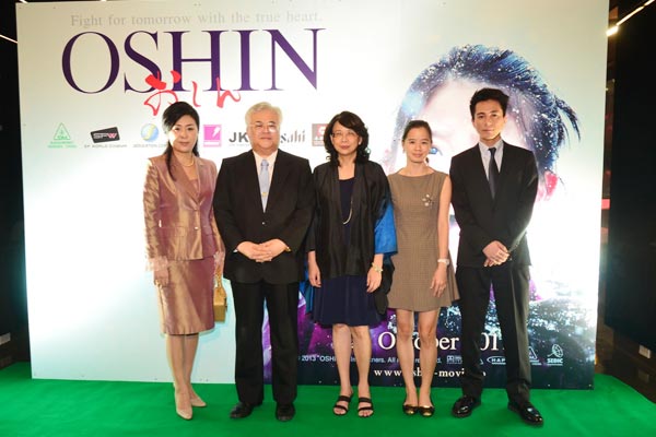 เปิดตัวอย่างเป็นทางการในประเทศไทยไปเมื่อค่ำวันที่ 22 ตุลาคม ที่ผ่านมา สำหรับภาพยนตร์เรื่อง OSHIN โอชิน สาวน้อย หัวใจแกร่ง ภาพยนตร์ญี่ปุ่น เจ้าของสถิติภาพยนตร์ที่มีผู้ชมดูซ้ำรอบมากที่สุด ในญี่ปุ่น ด้วยความดีเด่นของตัวเนื้อหา ที่พูดถึงพลังใจของเด็กผู้หญิงที่ชื่อ โอชิน ที่ยึดถือความกตัญญูและความพยายามเป็นที่ตั้งในการทำทุกอย่างเพื่อครอบครัวและคนที่เธอรัก โดย คุณชมศจี เตชะรัตนประเสริฐ รองประธานกรรมการฝ่ายขาย บริษัทมงคลภาพยนตร์ และ สหมงคลฟิล์มอินเตอร์เนชั่นแนลจำกัด ผู้จัดจำหน่ายภาพยนตร์เรื่องนี้ในประเทศไทย ได้ ร่วมมือกับ คุณสุวรรณี ชินเชี่ยวชาญ รองประธานเจ้าหน้าที่บริหารสายงานการตลาด บริษัท เอส เอฟ คอร์ปอเรชั่น จำกัด (มหาชน) และ มิสเตอร์ ชิเงกิ โคบายาชึ ที่ปรึกษาเอกอัคราชทูตญี่ปุ่นประจำประเทศไทย ได้ร่วมกันจัดงานเปิดตัวภาพยนตร์เรื่องนี้ขึ้น ณ ชั้น 8 โรงภาพยนตร์ เอส เอฟ เวิลด์ ซีเนม่า ท่ามกลางสื่อมวลชน และ แฟนคลับภาพยนตร์ญี่ปุ่น ที่มาร่วมให้กำลังใจภาพยนตร์เรื่องนี้อย่างคับคั่ง โดยบรรยากาศภายในงานเต็มไปด้วยความคึกคัก เมื่อเชฟบุญธรรม เชฟกระทะเหล็กอาหารญี่ปุ่นหนึ่งในแฟนคลับผู้ชื่นชอบ โอชิน ได้มาร่วมทำอาหารเมนูพิเศษ ซูชิข้าวหัวไชเท้า และ ปลาดิบเมนูต่างๆ สำหรับแขกภายในงานโดยเฉพาะ