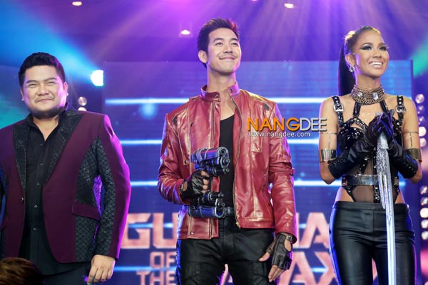 ซึ่งในงานนี้ "หนุ่มเวียร์" มาในคาแร็คเตอร์ของ "ปีเตอร์ ควิลล์" พระเอกหัวขโมยที่ เซอร์ , กวน , ลุย ดูๆแล้วออกจะไม่ค่อยเหมือนพระเอกเท่าไหร่ ส่วนสาวสวย "เมญ่า" เป็นตัวแทนของ "กาโมร่า" ที่เจ้าตัวบอกว่า ให้เรียกว่าเธอเป็นสาวแซ่บมือสังหาร มาถึงนักร้องเสียงทรงพลัง "แบน ชลาทิศ" กับตัวละครของ "แดร๊กซ์" จอมพิฆาต , โรคจิต , และมีปม ตามมาด้วย "กบ เดอะว้อยส์" ที่มาถ่ายทอดตัวละคร "กรูท" ซึ่งในภาพยนตร์ให้เสียงโดย "วิน ดีเซล" ปิดท้ายด้วย "คิง เดอะว้อยส์" ที่มาสวมบทเป็น "ร็อคเก็ต" แรคคูนจอมแสบคู่หูของกรูท ที่ดูจะเก่งเกินตัวมากเหมือนโกหก�