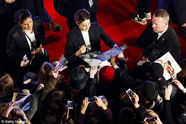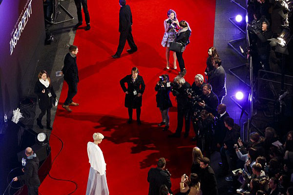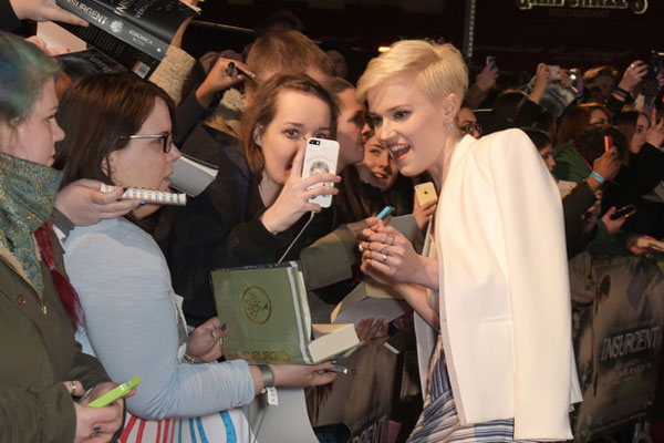 ธีโอ เจมส์ ในมาดชุดสูทสีน้ำเงินเข้มสุดหล่อเนี๊ยบ และ เวอโรนิก้า รอธ ในชุดแจ็คเก็ตเรียบง่ายสีขาวคลุมไหล่ กระโปรงยาวสีน้ำเงิน และสีขาว พร้อมด้วยผมสีบลอนด์ใหม่สวยสุดเฉียบ งานเปิดตัวภาพยนตร์จัดขึ้นที่โรงภาพยนตร์ Odeon ณ กรุงลอนดอน ประเทศอังกฤษ ท่ามกลางบรรยากาศการต้อนรับของแฟนๆอินเซอร์เจนท์ในอังกฤษ ที่มาให้การต้อนรับกันอย่างคับคั่งตั้งแต่นักแสดงยังเดินทางมาไม่ถึง