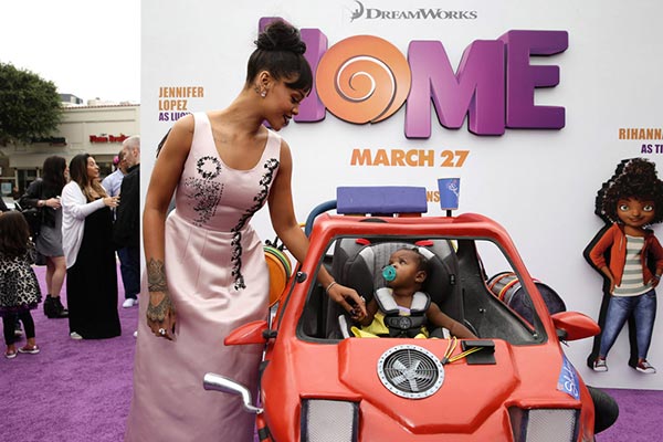 นำทีมเดินพรมม่วงเปิดตัว Home: L.A. Premiere