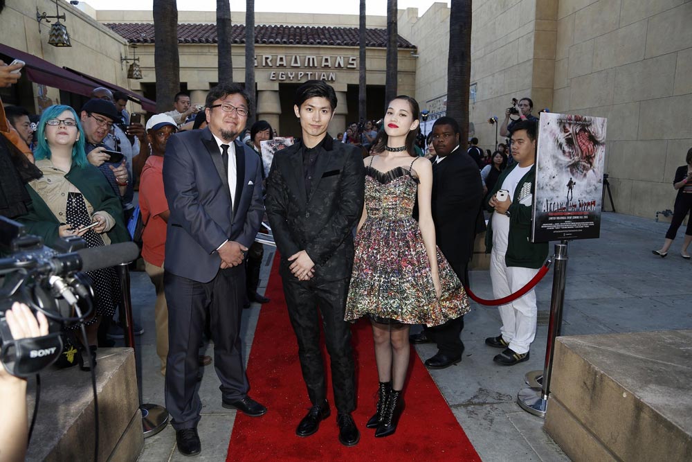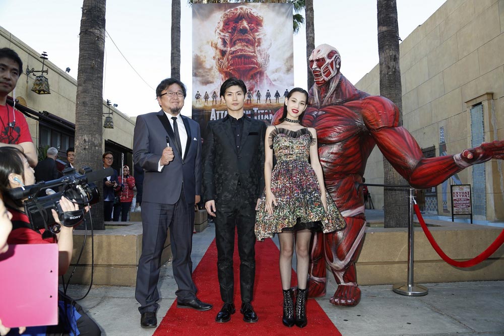"Attack on Titan" ยังนำทัพนักแสดงและทีมงานไปจัดฉายภาพยนตร์ในรอบปฐมทัศน์ เพื่อประกาศศักดาความยิ่งใหญ่ที่ลอส แองเจลิส ประเทศสหรัฐอเมริกาอีกด้วย โดยหลังจากฉากจบ ผู้ชมต่างพร้อมใจกันลุกขึ้นปรบมืออย่างยาวนาน สร้างความปลาบปลื้มยินดีให้กับเหล่านักแสดงและทีมงานเป็นอย่างมาก