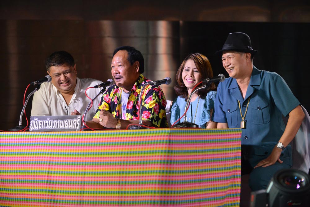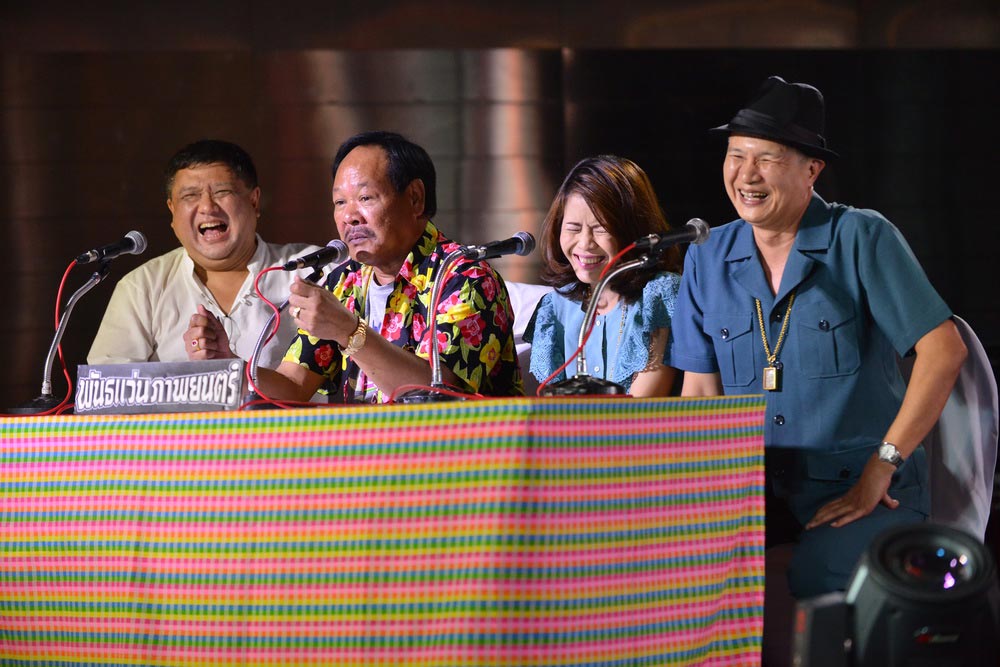 "พี่โต๊ะ พันธมิตร, อาเกรียง-เกรียงศักดิ์ เหรียญทอง, อาติ่ง-สุภาพ ไชยวิสุทธิกุล, พี่ภา-สุรพร ใจรัก" ที่มาโชว์ลีลาพากย์สดสุดสนุกให้กับการแสดงสุดติ่งกระดิ่งไก่ของทีมนักแสดง