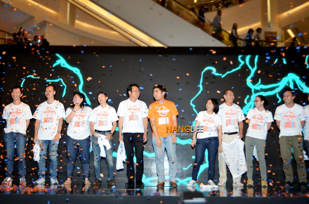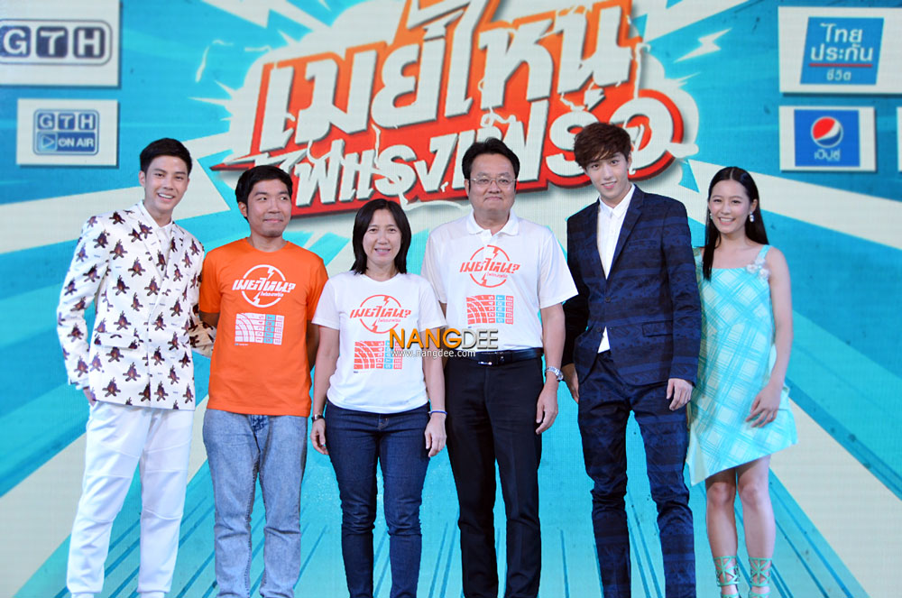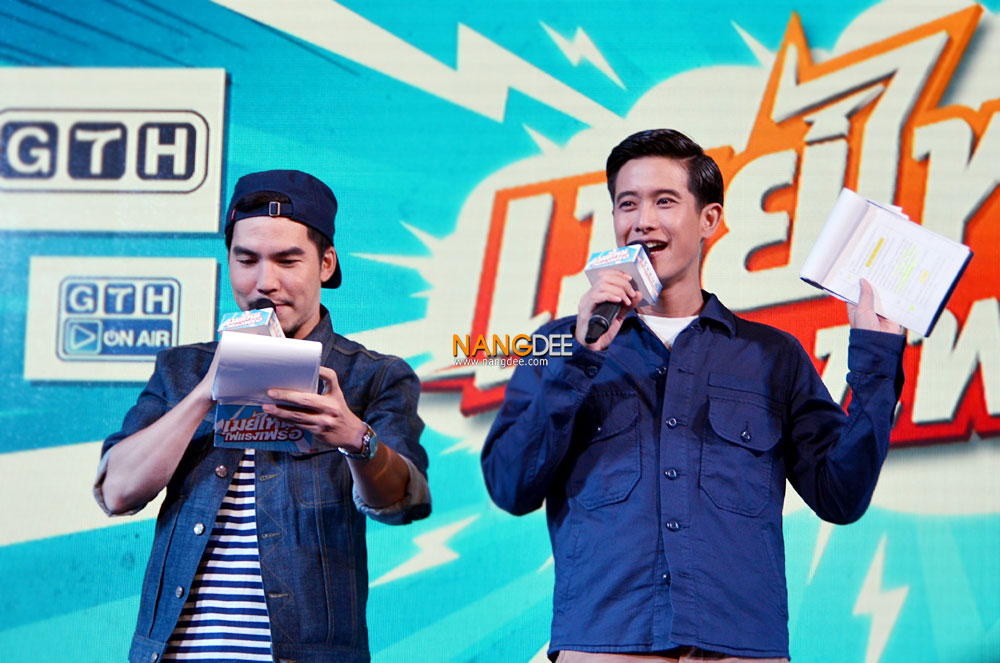 หมู - ชยนพ บุญประกอบ ที่มาในชุดของ พี่สุชาติ พร้อมถอดหมวกออกมาแถมเหล่าผู้บริหารยังดึงป้ายเสื้อฟรีแลนซ์ฯออกอย่างพร้อมเพรียง เรียกได้ว่าเริ่มงานแถลงข่าวได้อย่างเป็นทางการและสร้างเสียงหัวเราะให้กับพี่ๆสื่อมวลชนได้ดีเลยทีเดียว ซึ่งงานนี้ก็ยังเป็น 2 พิธีกรคู่ฮา