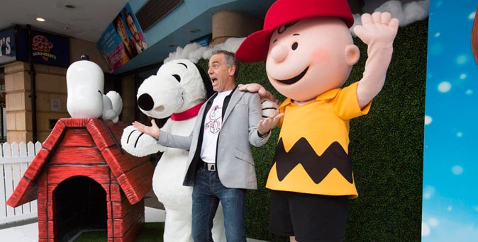 สตีฟ มาร์ติโน่ ผู้กำกับภาพยนตร์ Snoopy and Charlie Brown: The Peanuts Movie ร่วมงาน The Peanuts Movie - London Special Screening เพื่อระดมทุนการกุศลของ Text Santa/Save the Children Charity โดยนำ มาสคอต ชาร์ลี บราวน์ และ สนูปี้ ไปร่วมงาน เหล่าบรรดาเด็ก ๆ และผู้ที่มาร่วมงานให้ความสนใจกันอย่างคับคั่ง