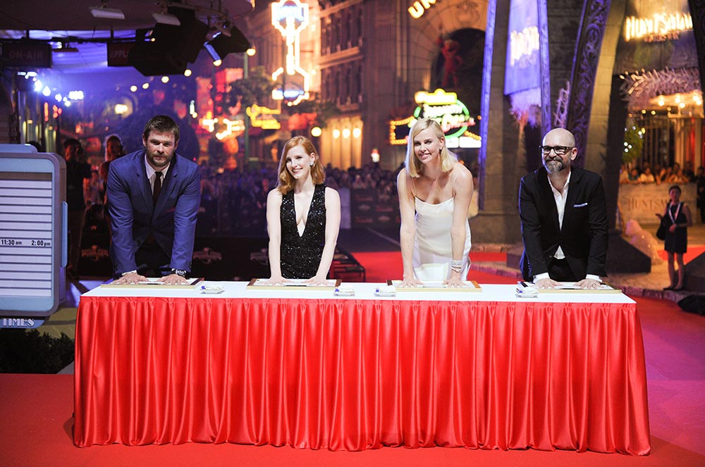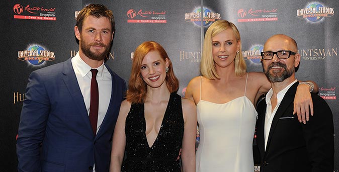 คริส เฮมส์เวิร์ธ, ชาร์ลิซ เธอรอน และเจสสิก้า แชสเทน พร้อมด้วยผู้กำกับ เซดริค นิโคลัส-โทรยัน นำทีมเปิดตัวและร่วมงานรอบปฐมทัศน์ภาพยนตร์ The Huntsman: Winter's War พรานป่าและราชินีน้ำแข็ง ที่ยูนิเวอร์แซล สตูดิโอ ประเทศสิงคโปร์ โดยทีมนักแสดงและผู้กำกับได้พบปะและถ่ายภาพกับแฟน ๆ ที่มารอต้อนรับอย่างเป็นกันเอง