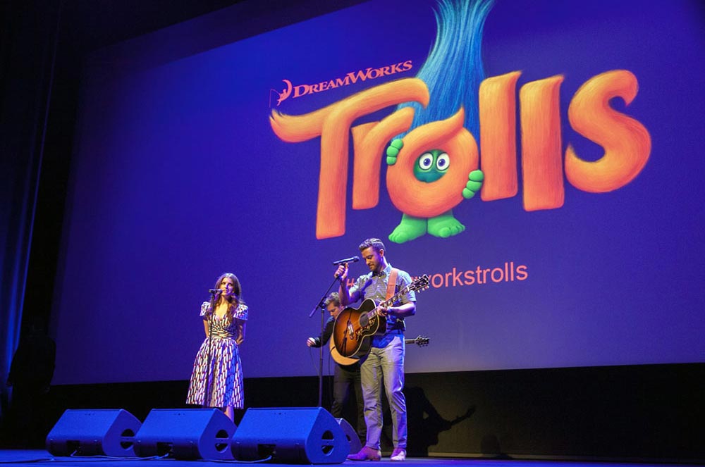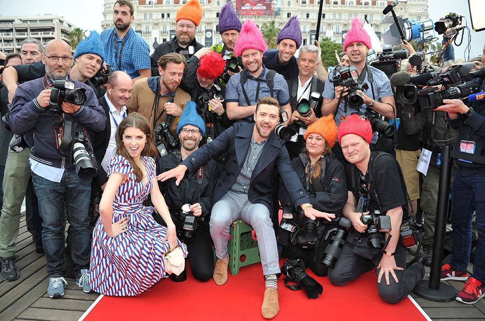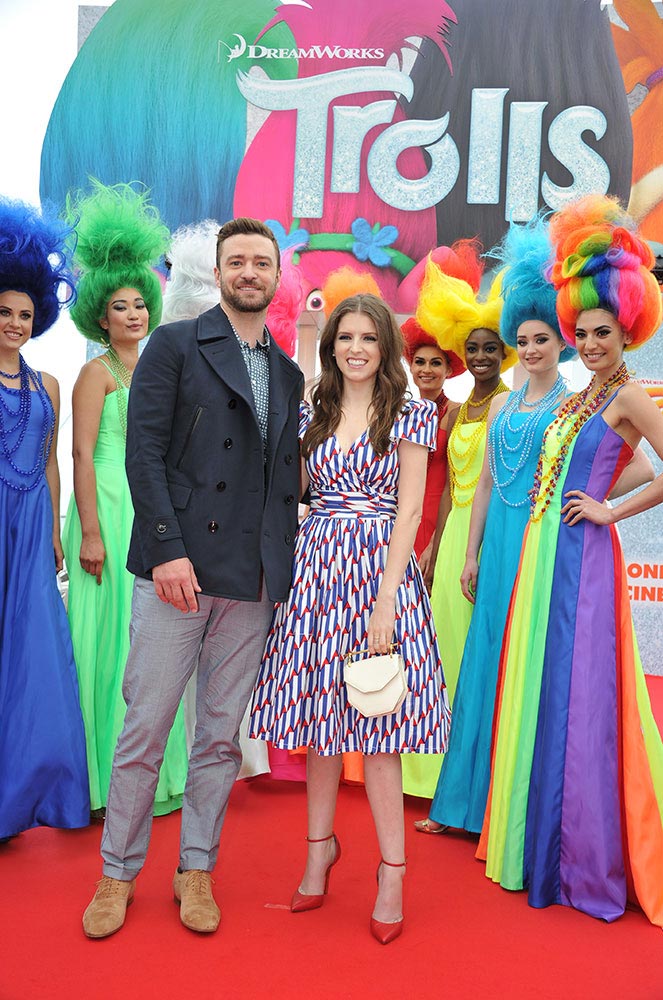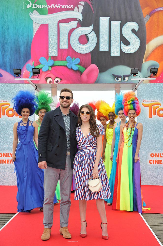 สองนักแสดงที่ร่วมให้เสียงพากย์ในภาพยนตร์เอนิเมชั่นคอมเมดี้เรื่อง Trolls - โทรลล์ส นำโดย Anna Kendrick และ Justin Timberlake พากันโปรโมทภาพยนตร์กันที่งาน Cannes Film Festival 2016 ประเทศฝรั่งเศส นอกจากนี้ยังร่วมแสดงโชว์ร้องเพลง "True Colors" บนเวทีในงานนี้อีกด้วย