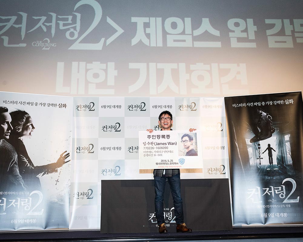 เริ่มเดินสายโปรโมทภาพยนตร์กันแล้ว The Conjuring 2 - คนเรียกผี 2 ที่งานนี้ผู้กำกับ เจมส์ วาน เดินสายร่วมงาน The Conjuring 2 - Press Conference จัดที่ประเทศเกาหลี