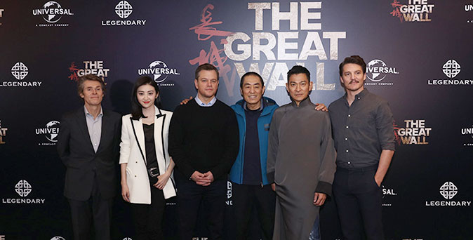 แมตต์ เดม่อน และหลิวเต๋อหัว นำทีมนักแสดง ร่วมงานแถลงข่าวเปิดตัวภาพยนตร์ The Great Wall ที่ ปักกิ่ง