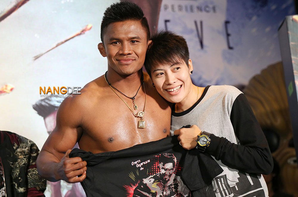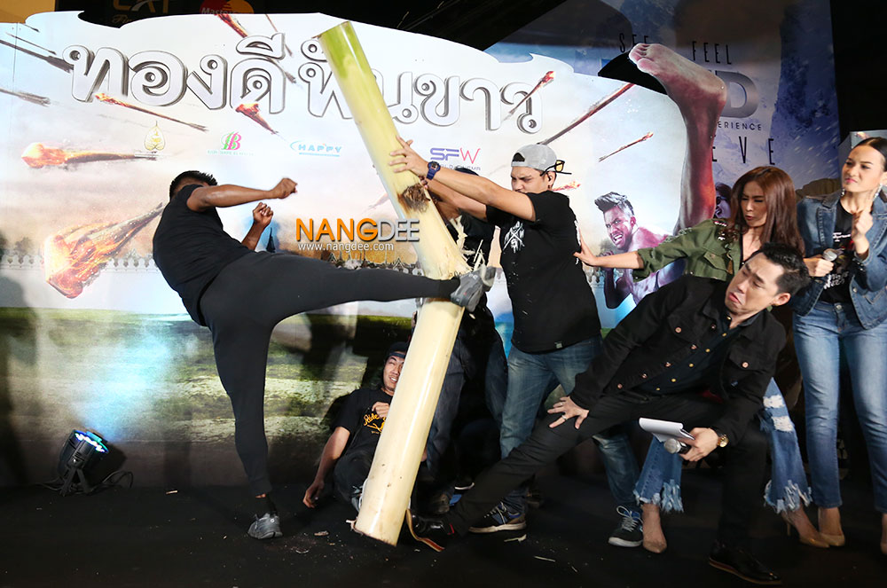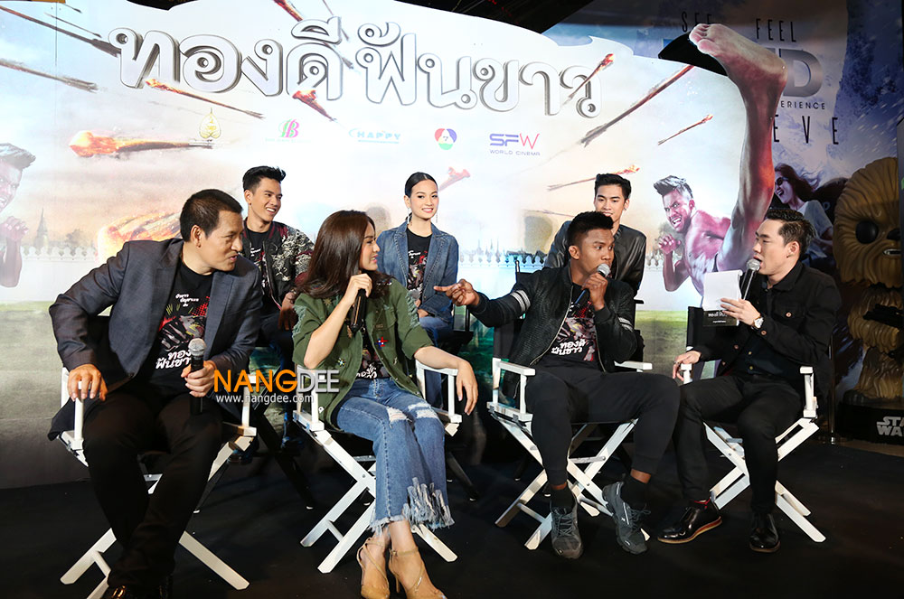 จากนั้นจึงเชิญซูเปอร์สตาร์นักชกระดับโลก "บัวขาว บัญชาเมฆ" ขึ้นมาเผยความรู้สึก "เมื่อบัวขาวเป็นทองดีฟันขาว" กับการทุ่มสุดตัวและหัวใจในการแสดงเต็มตัวครั้งแรกในเรื่องนี้ พร้อมเพิ่มความคึกคักด้วยตัวอย่างภาพยนตร์ก่อนเชิญทีมนักแสดงอย่าง "มะนาว - ศรศิลป์ มณีวรรณ์, วุฒิ - นันทวุฒิ บุญรับทรัพย์, ภูมิ - วรรณภูมิ ทรงสุภาพ, ปุยฝ้าย - ชุติรดา จันทิตย์" ขึ้นมาร่วมพูดคุยถึงประสบการณ์ร่วมงานที่น่าภาคภูมิใจในการเป็นส่วนหนึ่งของประวัติศาสตร์ที่ถูกเล่าผ่านภาพยนตร์ แล้วก็ถึงไฮไลต์เด็ดของงานเมื่อบัวขาวโชว์ความแข็งแกร่งเตะต้นกล้วยต่อหน้าเหล่าสื่อมวลชน และปิดท้ายด้วยการถ่ายภาพรวมของคณะผู้บริหาร, ผู้กำกับ และทีมนักแสดงจากภาพยนตร์