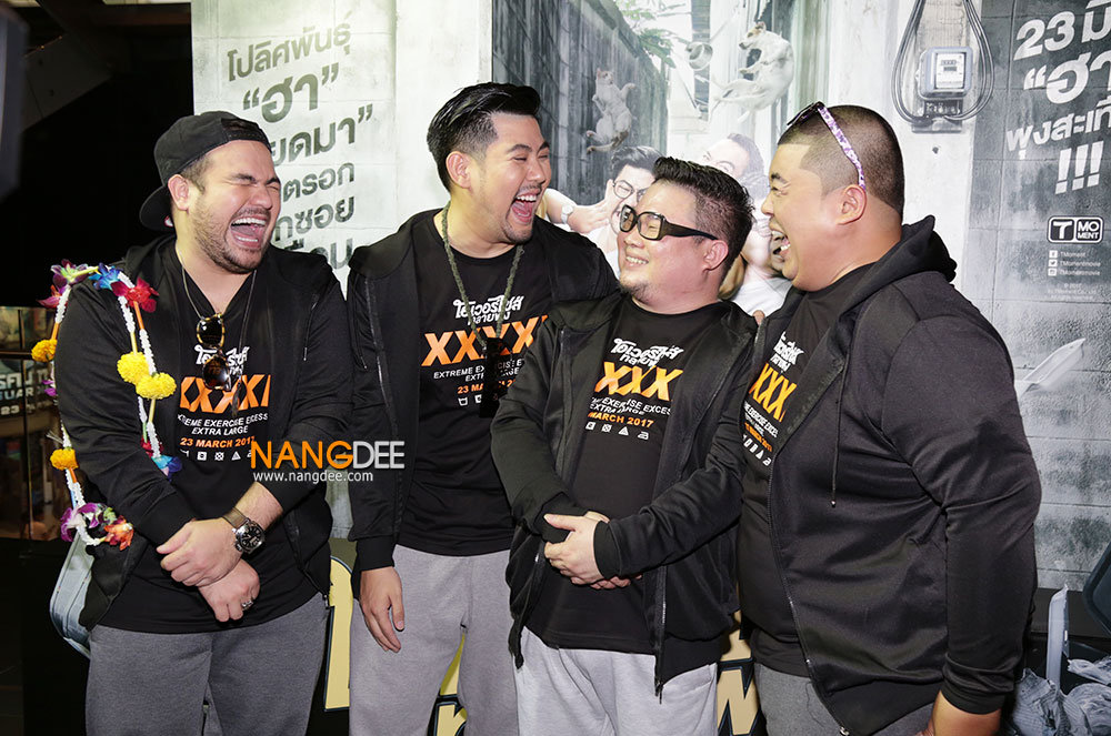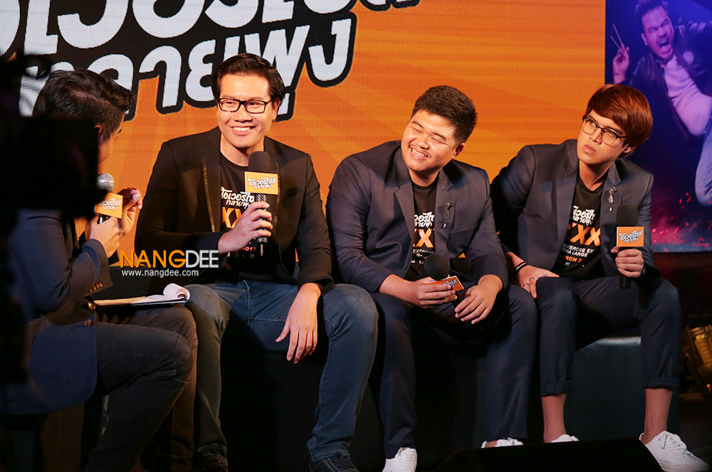 ตี๋ - ภูวนิตย์ ผลดี, โอ๊ต - ชานนท์ ยิ่งยง ขึ้นพูดคุยบนเวทีเกี่ยวกับที่มาที่ไปของการทำภาพยนตร์ การเขียนบท รวมไปถึงการคัดเลือกนักแสดง ต่อด้วยการเปิดตัวนักแสดงเริ่มจาก เชอรีน ณัฐจารี ที่ขึ้นมาพูดถึงการชิมลางในสายหนังครั้งแรก ต่อกันด้วยการเปิดตัวนักแสดงนำชายทั้ง 4 ตงตง, โอ๊ต, ฟลุค และ เอ๊ดดี้เฮง ผู้ชายสายหมีที่จะมาโชว์ความแข็งแรงพร้อมกับเพลง