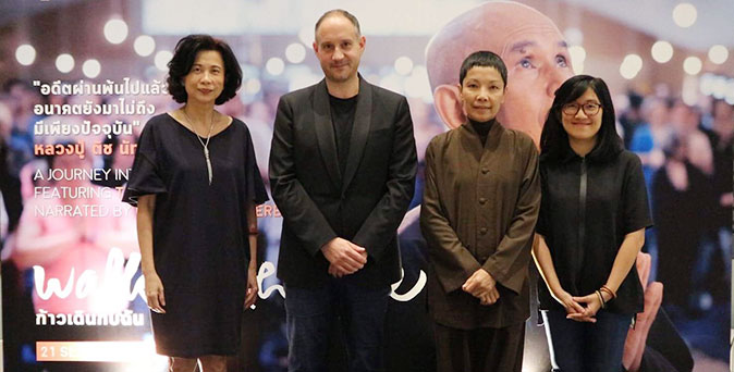 "ก้าวเดินกับฉัน" ซึ่งหนังสารคดีเรื่องนี้จะพาเราก้าวเดินไปพร้อมเหล่านักบวชและหลวงปู่ ติช นัท ฮันห์ พระภิกษุชาวเวียดนามผู้ได้รับการเสนอชื่อสำหรับรางวัลโนเบลสาขาสันติภาพโดย มาร์ติน ลูเธอร์ คิง มาซึมซับประสบการณ์แสนพิเศษ ของการอยู่ "ที่นี่" และ "ขณะนี้" ผ่านรูปแบบภาพยนตร์และให้เสียงบรรยายโดย เบเนดิกต์ คัมเบอร์แบตช์ (พระเอกชื่อดังจากภาพยนตร์เรื่อง Doctor Strange, 12 Years a Slave และ The Imitation Game)