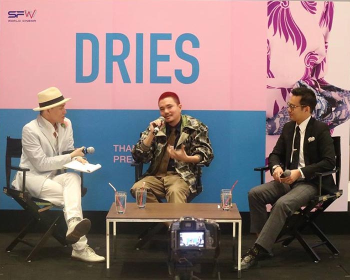 ก่อนที่จะได้ชมภาพยนตร์สารคดีเรื่องนี้ มีการจัดเสวนาแบบเจาะลึกเรื่องราวของ ดรีส วันโนเทน โดยมี คุณเอก ทองประเสริฐ (ดีไซน์เนอร์ชื่อดังผู้จบจากสถาบันเดียวกับดรีส) และคุณปืน-สธน ตันตราภรณ์ (รองบรรณาธิการนิตยสารโว้กประเทศไทย) ภายใต้การดำเนินการสัมภาษณ์โดยคุณเอิร์ธ-นิโรธ รื่นเจริญ หรือ เอิร์ธ ออสการ์ มาร่วมพูดคุยอย่างออกรส ให้ผู้มาร่วมงานได้รับรู้ในหลาย ๆ แง่มุมที่ไม่เคยรู้มาก่อนเกี่ยวกับ ดรีส ด้วยบรรยากาศสนุกสนานและเป็นกันเอง
