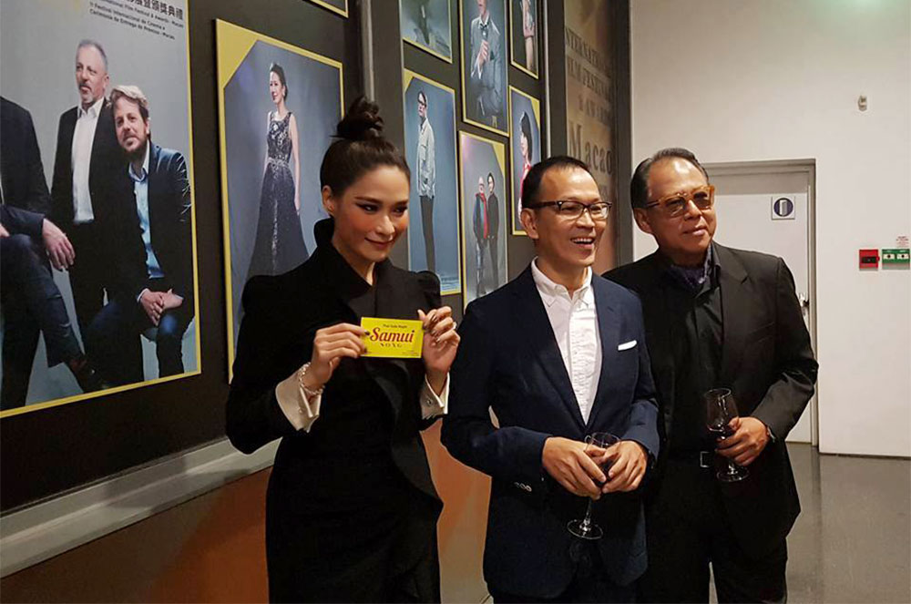 "Samui Song - ไม่มีสมุยสำหรับเธอ" ที่จัดขึ้นในเทศกาลภาพยนตร์นานาชาติมาเก๊า ครั้งที่ 2 (2nd International Film Festival and Awards - Macao) เมื่อคืนวันที่ 13 ธันวาคม 2560 ณ Macao Cultural Center บรรยากาศภายในงานมีนายอสิ ม้ามณี กงสุลใหญ่ ณ เมืองฮ่องกง พร้อมด้วยประธานสภาหอการค้าไทย-มาเก๊าได้จัดงานเลี้ยงต้อนรับคณะภาพยนตร์อย่างอบอุ่นท่ามกลางแฟน ๆ ชาวไทย และชาวจีนด้วยบรรยากาศที่คึกคักอบอุ่นเป็นกันเอง