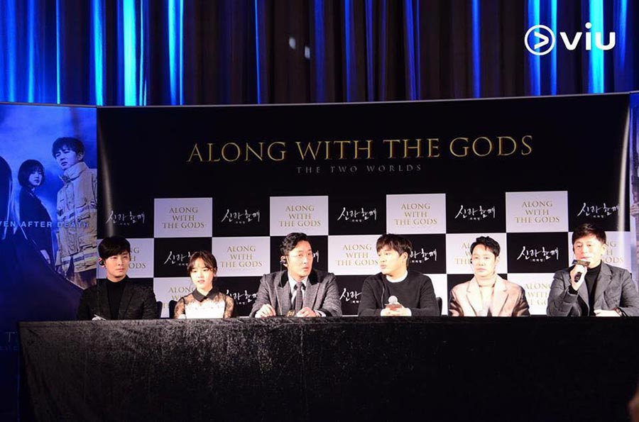 โดย "Along With the Gods" ได้จัดงานแถลงข่าวเมื่อวันที่ 18 ธันวาคมที่ผ่านมา และได้มีการพูดคุยอย่างสนุกสนานถึงที่มาที่ไปและบรรยากาศในการถ่ายทำกับผู้กำกับ คิม ยงฮวา พร้อมเหล่านักแสดงนำ ไม่ว่าจะเป็น