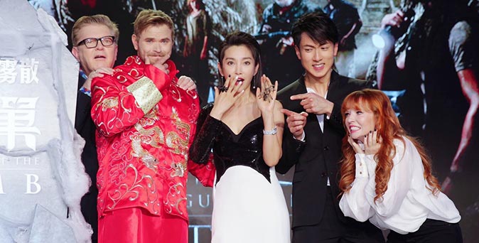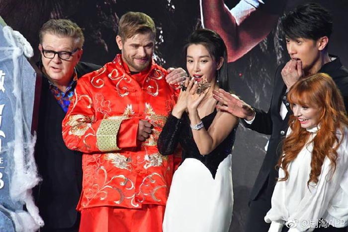 เคลแลน ลุตซ์ ด้วยการให้ใส่ชุดประจำชาติประเทศจีน ไม่เพียงแค่นั้นกลุ่มนักแสดงยังได้แชะภาพกับ แมงมุมของจริง ที่ได้สร้างความฮือฮาทั่วงาน ทำเอาแฟน ๆ และกองทัพสื่อมวลชนชื่นชมในความน่ารักและความเป็นกันเองของเหล่านักแสดงภายในงาน เพื่อไขปริศนาของตำนานที่โลกลืม พันธนาการด้วยความกลัว เผชิญหน้ากองทัพปีศาจร้าย จากทีมวิชวลเอฟ Thor: Ragnarok และ Mad Max: Fury Road ก้าวเท้าสู่ดินแดนแสนเร้นลับใน