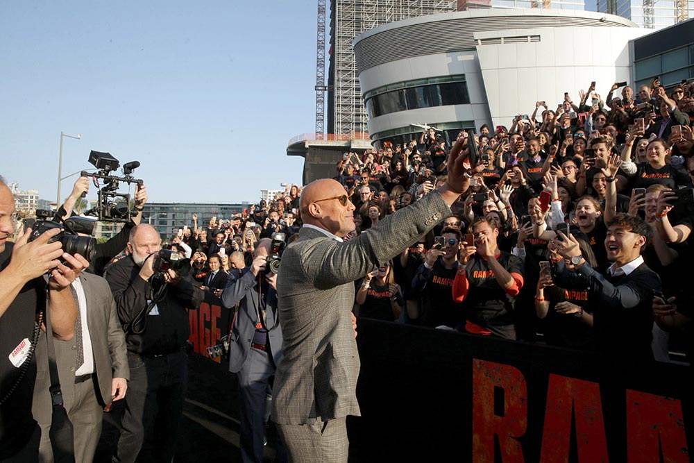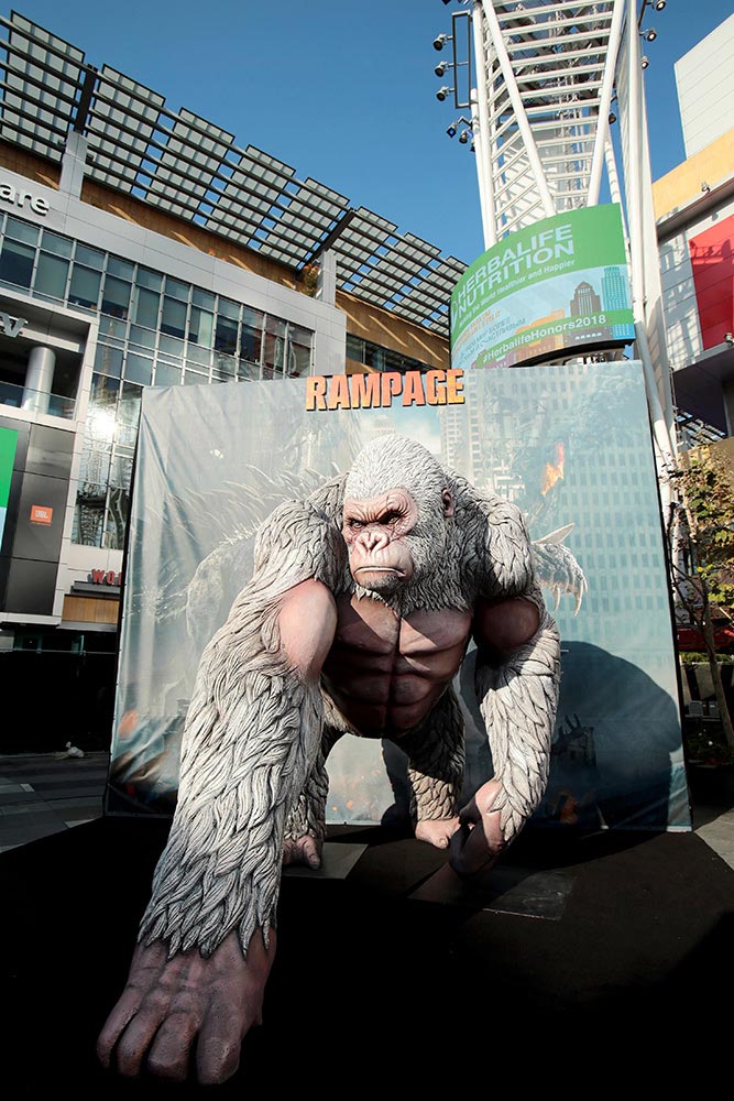 "Rampage - ใหญ่ชนยักษ์" ภาพยนตร์แอคชั่นผจญภัยสุดยิ่งใหญ่จากวอร์เนอร์ บราเธอร์ พิกเจอร์ส ที่จัดขึ้น ณ ลอสแอนเจลิส รัฐแคลิฟอร์เนีย แถมงานนี้ยังได้เนรมิตตัวละครสำคัญอย่าง "จอร์จ" กอริล่าขนาดใหญ่ยักษ์ขึ้นมาให้แฟน ๆ ที่มารอต้อนรับได้ชมความยิ่งใหญ่ไปพร้อม ๆ กับการเก็บภาพเหล่านักแสดงเพื่อเป็นที่ระลึก งานนี้เรียกได้ว่า