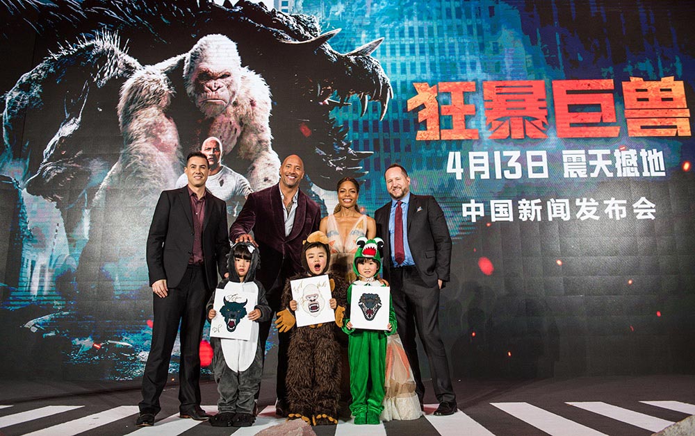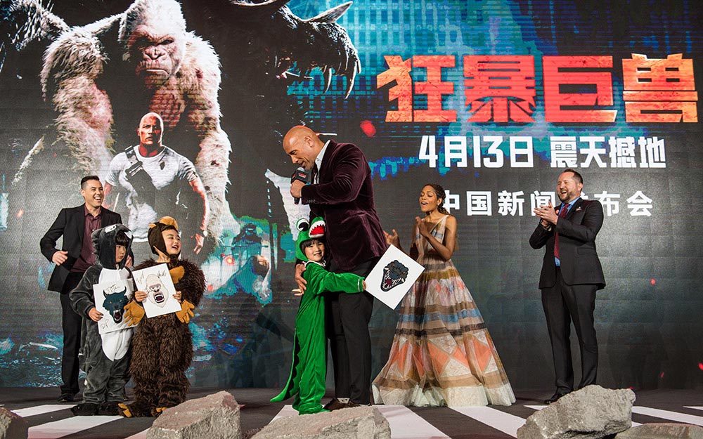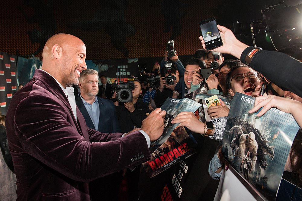 แดนมังกรสะเทือนเมื่อ ดเวย์น จอห์นสัน นำทีมเปิดตัวภาพยนตร์ "Rampage - ใหญ่ชนยักษ์"