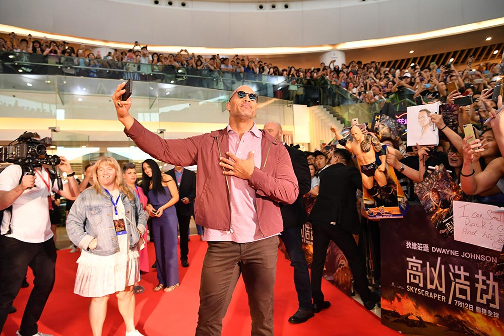 ในงานเปิดตัวหนัง "Skyscraper ระห่ำตึกเสียดฟ้า"