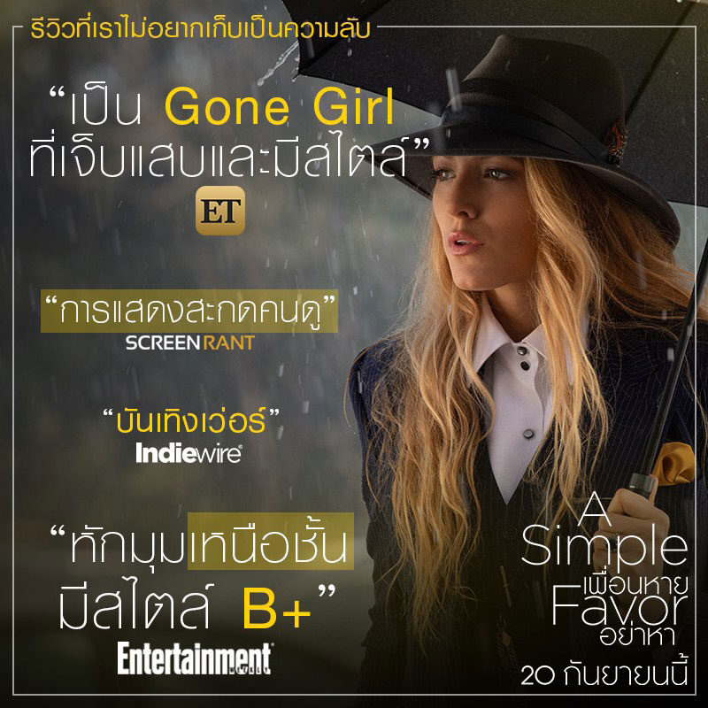 "A Simple Favor" ซึ่งงานนี้นำทีมโดยนักแสดงนำอย่าง