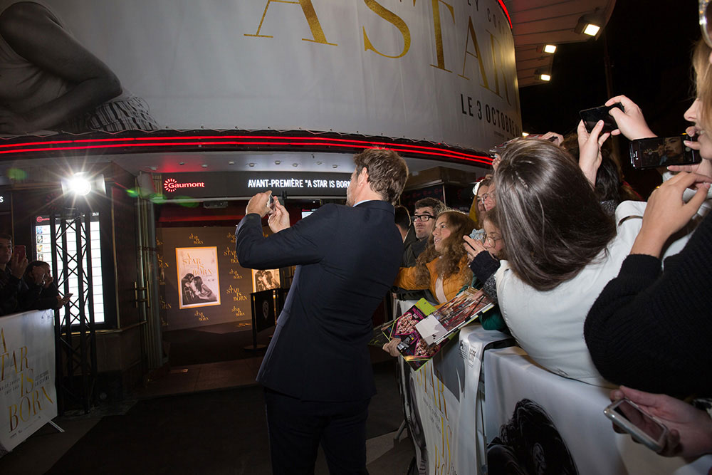 A Star Is Born (A Star Is Born - Paris Premiere) ที่ได้จัดขึ้น ณ กรุงปารีส ประเทศฝรั่งเศส ที่มาในลุคหล่อเนี๊ยบให้แฟน ๆ ที่มารอต้อนรับเก็บภาพอย่างเป็นกันเอง