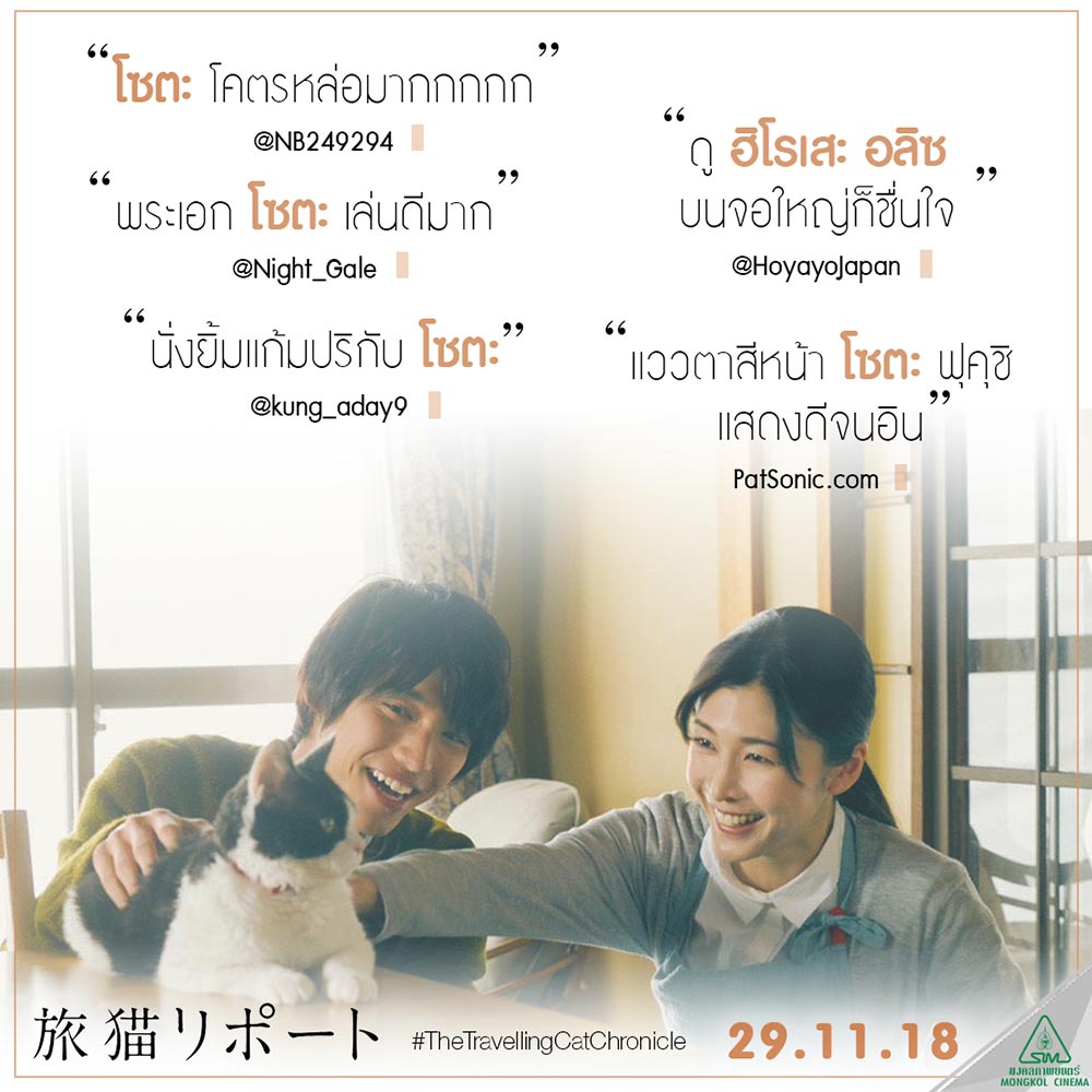 "The Travelling Cat Chronicles - ผมแมวและการเดินทางของเรา" หลังกระแสเรียกน้ำตาคนทั่วญี่ปุ่น ล่าสุด เมื่อค่ำวันที่ 21 พฤศจิกายนที่โรงภาพยนตร์ เอสเอฟ เวิลด์ ซีเนม่า