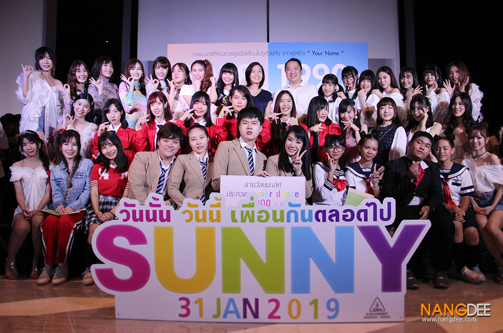 "Sunny วั้นนั้น วันนี้ เพื่อนกันตลอดไป" ที่ได้จัดฉายรอบสื่อมวลชน ไปเมื่อวันที่ 28 มกราคม 2019 และมีแฟนเข้าร่วมชมมากมาย โดยงานจัดขึ้นที่ โรงภาพยนตร์ SF World Cinema บรรยากาศเต็มไปด้วยความอบอุ่น โดยภายในงานได้ ไอดอลสาวมาเข้าร่วมงานอย่างคับคั่ง อย่าง Secret 12, Siam Dream, Seventh Sense, Fever, ม่านมุก และพราด้า จากวง SWEAT 16! มาร่วมชมและส่งตัวแทนเป็นกรรมการตัดสิน รอบชิงชนะเลิศ การประกวดเต้นโคฟเวอร์เพลง Tsuyoi kimochi tsuyoi ai ซึ่งเป็นฉากสำคัญของเรื่องที่ใครได้ชมรับรองเลยว่า ต้องน้ำตาซึม โดยมีเงินรางวัลชนะเลิศ 10,000 บาท นอกจากนั้นยังมีทั้ง เซเลบริตี้ ดีเจ นักแสดง และผู้กำกับ ชั้นนำของไทย ที่มาร่วมชมภาพยนตร์ "Sunny วั้นนั้น วันนี้ เพื่อนกันตลอดไป"
