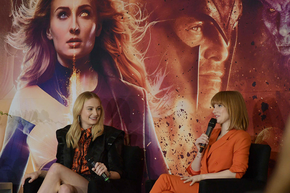 "X-Men: Dark Phoenix" จัดขึ้นอย่างยิ่งใหญ่ที่เม็กซิโกซิตี้ ในงานเต็มไปด้วยบรรดาแฟน X-เม็น ที่มารอต้อนรับพร้อมส่งเสียงเชียร์อย่างล้นหลาม และยิ่งดังมากขึ้นเมื่อทั้งสองได้เปิดตัวบนพรมแดงด้วยชุดสุดปัง! โดย เทอร์เนอร์ มาในชุดสีน้ำเงินด้วยกางเกงผ้าซาตินเอวสูง พร้อมแจ็คเก็ตสีตัดกับเสื้อสีน้ำเงินตัวเล็กด้านใน ที่มองยังไงก็เซ็กซี่สุด ๆ ด้านตัวแม่อย่าง แชสเทน มาในชุดสีชมพูพร้อมเสื้อคุมทับสีแดง และนั่นก็ทำให้เธอโดดเด่นไม่น้อยเลยทีเดียว นอกจากเปิดตัวบนพรมแดงให้สื่อมวลชนได้เก็บภาพแบบจัดเต็มแล้ว พวกเธอยังได้แจกลายเซ็น พร้อมถ่ายเซลฟี่กับแฟน ๆ อย่างเป็นกันเอง ก่อนที่จะร่วมพูดคุยถึงเรื่องราวภาพยนตร์บนเวทีอีกด้วย