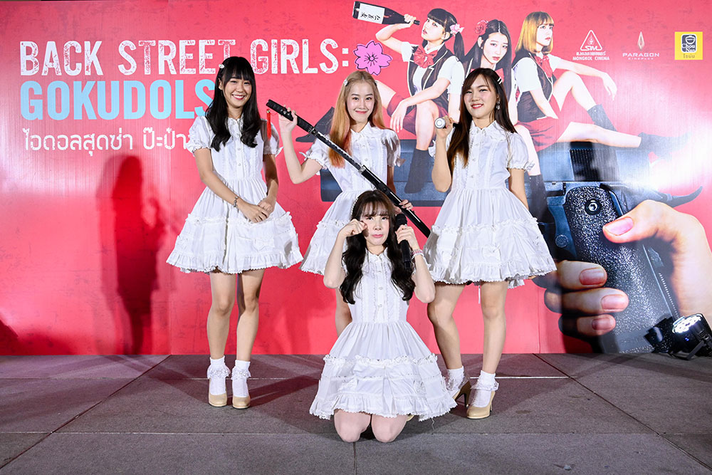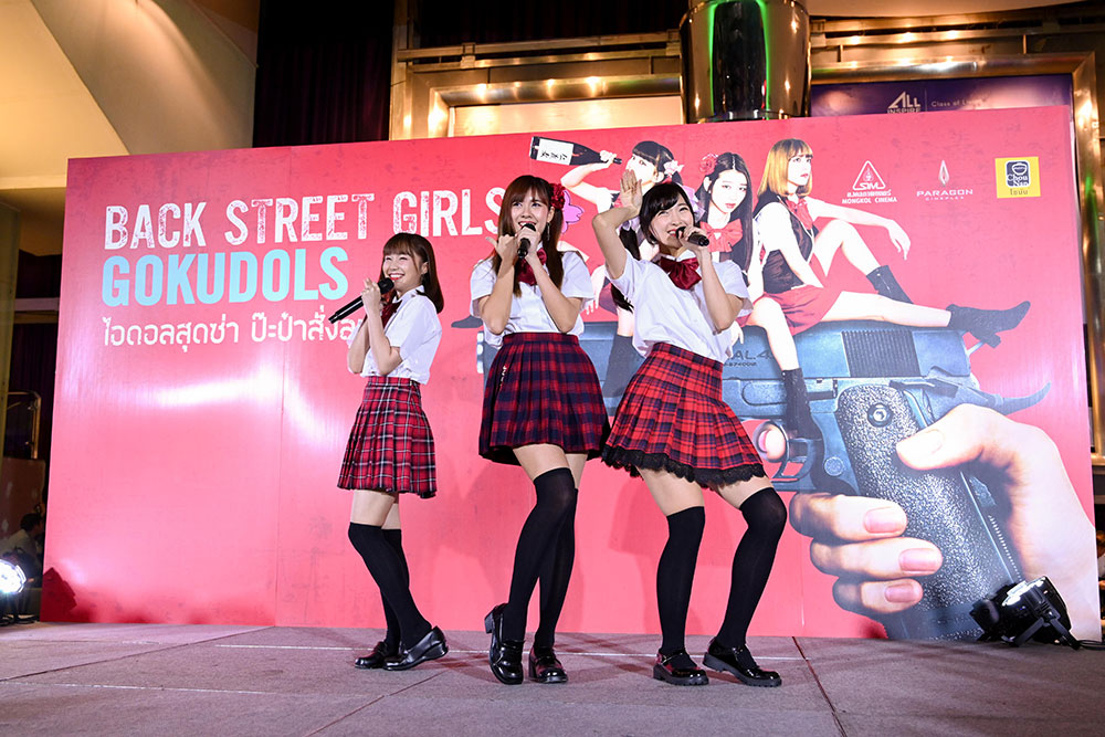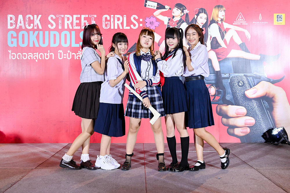 "Back Street Girls ไอดอลสุดซ่า ป๊ะป๋าสั่งลุย" ที่เตรียมเข้าฉายในไทย 27 มิถุนายน นี้ โดยทางมงคลซีนีม่าจัดงานรอบสื่อมวลชนขึ้นที่พารากอนซีนีเพล็กซ์ เมื่อค่ำวันที่ 24 มิถุนายน พร้อมด้วยโชว์สุดพิเศษ ไอดอลยากูซ่า จาก 7 วง ไอดอลชื่อดังของไทย