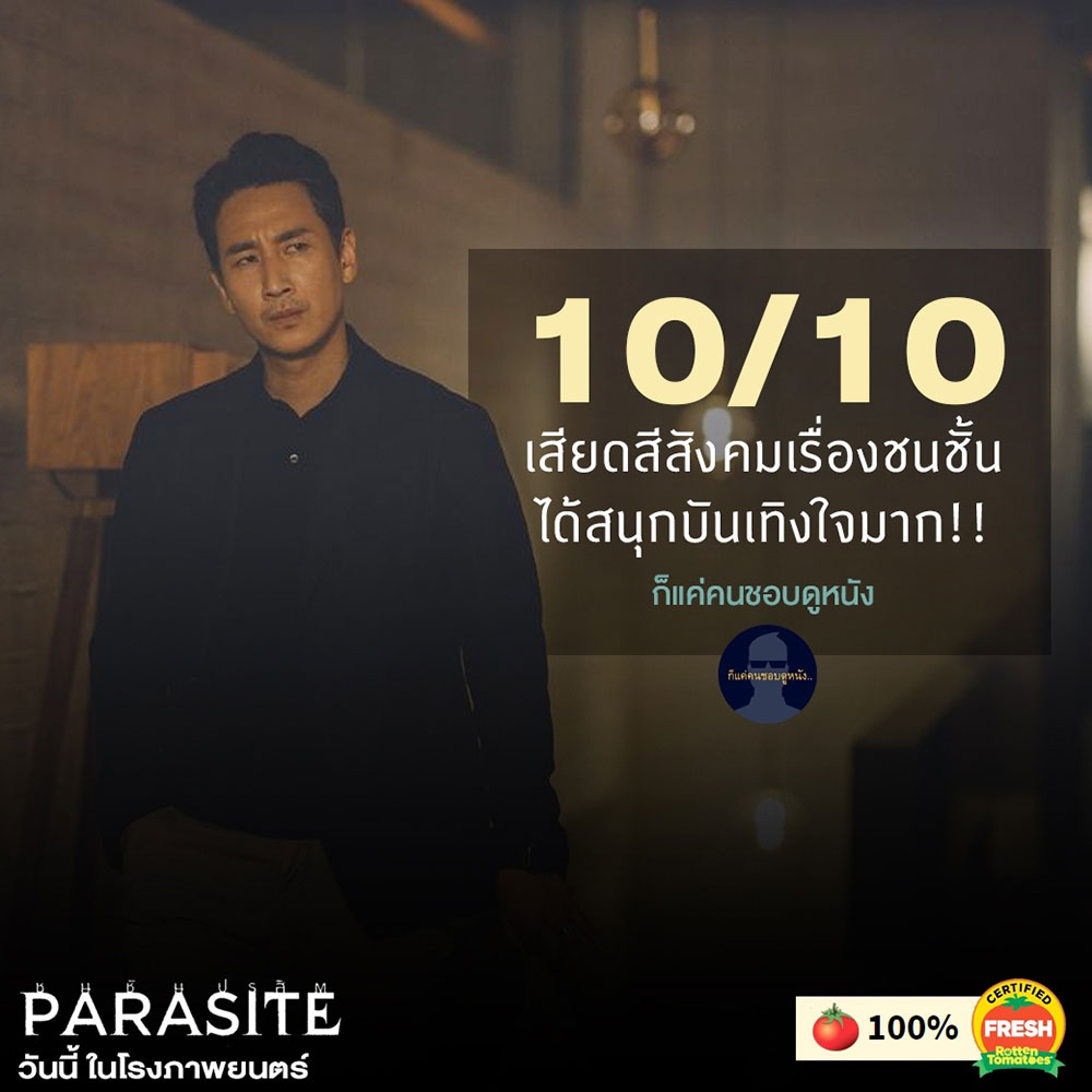 "สมคำร่ำลือไม่แปลกใจที่ได้รางวัล เป็นหนังที่สนุกมาก ๆ เป็นงานมาสเตอร์พีซของ บงจุนโฮ หนังสะท้อนสังคมที่ดูสนุกที่สุดเรื่องนึง บันเทิงมาก ในขณะเดียวกันก็เจ็บปวดมาก การกำกับแม่นยำไปหมด คนทำคิดมาแล้วทุกเหลี่ยมจริง ๆ" - คุณโต้ง บรรจง ผู้กำกับแฟนเดย์ /