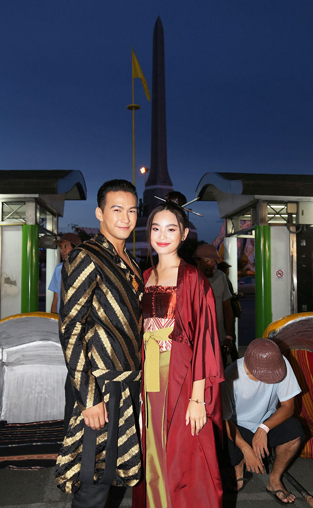 ฮือฮากลางอนุสาวรีย์ฯ ฟิลลิปส์ ควง ฟ้า ยงวรี นั่งแกร้ปแท็กซี่อโยธยาเปิดตัวบท ช้าง-พิม