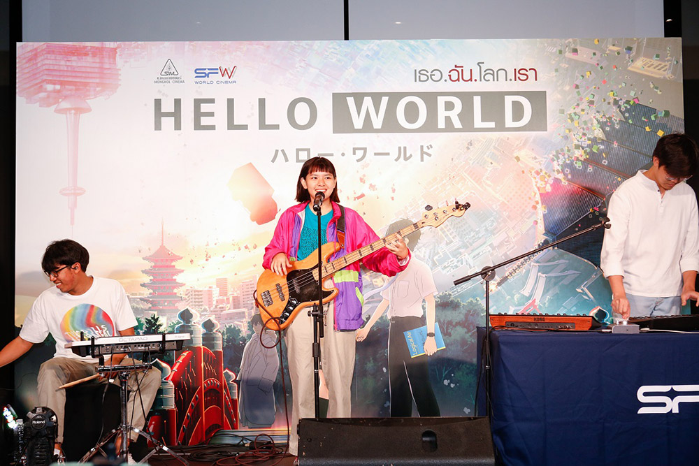 กลายเป็นภาพยนตร์อนิเมะไซไฟ-โรแมนติกแห่งปี ที่เรียกความประทับใจแบบปากต่อปาก สำหรับภาพยนตร์เรื่อง Hello World - เธอ.ฉัน.โลกเรา ที่ได้จัดฉายรอบสื่อมวลชนไปเมื่อวันที่ 25 พฤศจิกายนที่ผ่านมาที่โรงภาพยนตร์เอสเอฟเวิล์ดซีนีม่า ที่ได้ 2 สาว BNK48 จิ๊บ - จีจี้ ร่วมด้วย 2 หนุ่ม พอร์ช - บอส จาก Conversation Thailand มาพูดคุยเกี่ยวกับอนิเมะญี่ปุ่น และได้สาวเสียงดี Panpan Yeeyee จากค่าย LOVE IS มาโชว์ความสดใสและร้องเพลงเปิดงานอีกด้วย