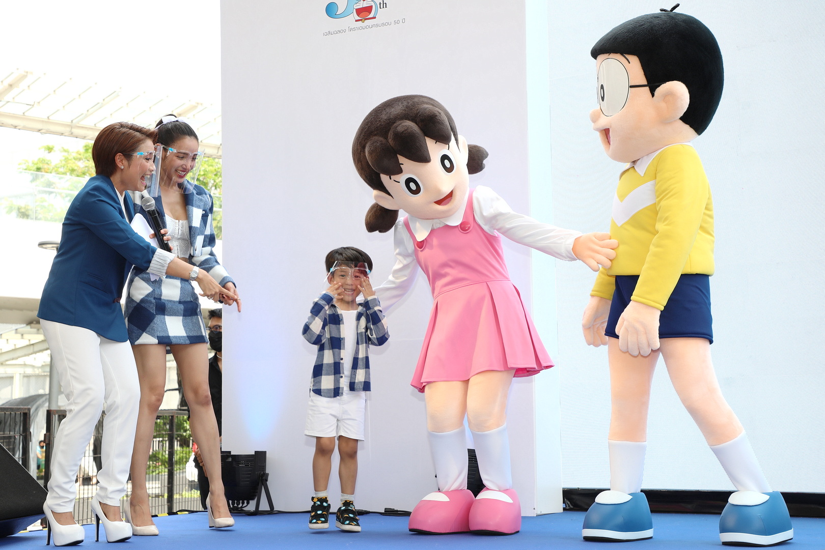 โดยในงานนี้ได้คู่แม่ลูกผูกพันอย่าง "แพท ณปภา ตันตระกูล" ควงคู่มาพร้อมกับลูกชาย "น้องเรซซิ่ง" ที่มาพูดคุยถึงความประทับใจที่มีต่อโดราเอมอน ในแบบฉบับของแม่แพทตั้งแต่ในช่วงวัยเด็กจนถึงปัจจุบัน จากนั้นถึงนาทีไฮไลท์ของงานคือการปล่อยมาสคอตคาแร็คเตอร์โดราเอมอน,โนบิตะ,ชิซุกะ และผองเพื่อนที่ส่งตรงมาจากญี่ปุ่น ทันทีที่น้องเรซซิ่งเห็นชิซุกะก็โผเข้ากอดแบบอัตโนมัติ สร้างสีสันให้ชั้น 1 ลาน Mega Plaza ศูนย์การค้าเมกาบางนา คึกคักมากขึ้นไปอีก