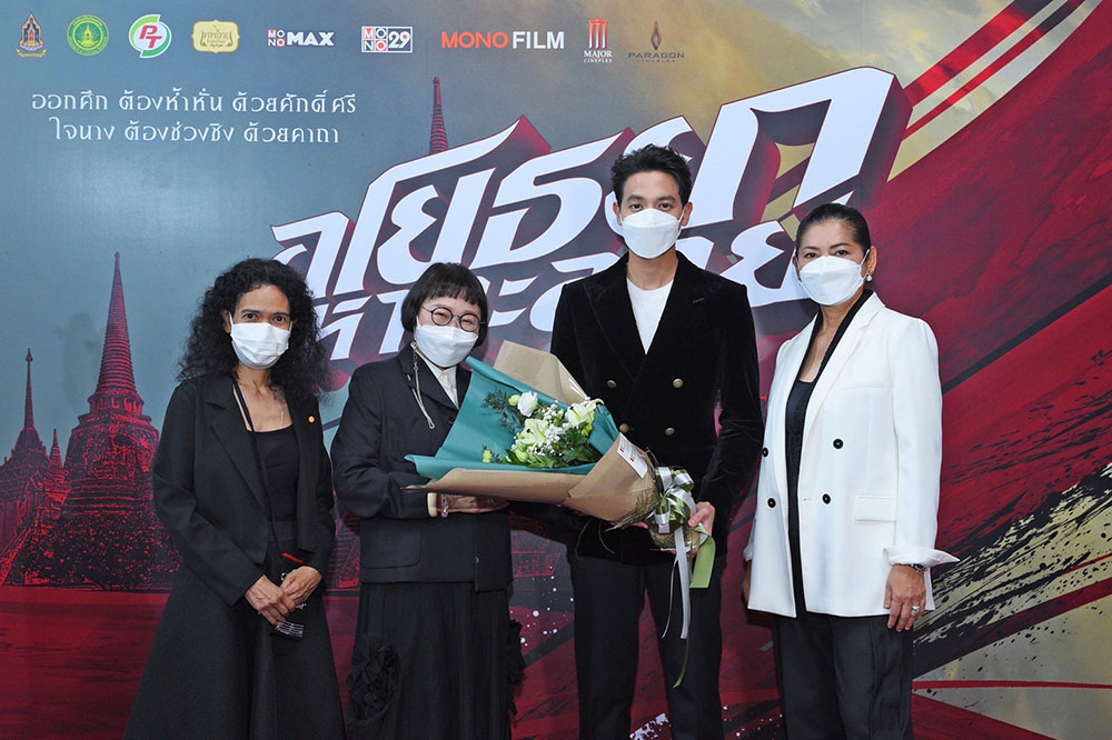 และเรียนเชิญผู้บริหาร คุณปฐมพงศ์ สิรชัยรัตน์ ประธานบริหาร บมจ. โมโนเน็กซ์, คุณบรรณสิทธิ์ รักวงษ์ ผู้อำนวยการ บริษัท โมโน บรอดคาสท์ จำกัด, คุณหทัยทิพย์ หมัดจุ้ย ผู้อำนวยการธุรกิจดูหนังออนไลน์ บริษัท โมโน สตรีมมิ่ง จำกัด, คุณอัจฉราพร พงษ์ฉวี ที่ปรึกษากรมส่งเสริมวัฒนธรรม, คุณพร้อมศักดิ์ จรัญญากรณ์ Managing Director บริษัท แม็กซ์ โซลูชัน เซอร์วิส จำกัด, คุณ วิชัย กุลธวัชชัย ผู้อำนวยการฝ่ายการตลาด บ. เมเจอร์ ซีนีเพล็กซ์ กรุ้ป จำกัด (มหาชน), คุณกิตติพัชร์ มณีพรเลิศสกุล ผู้จัดการทั่วไปสายงานปฏิบัติการ ศูนย์การค้าสยามพารากอน ขึ้นถ่ายภาพที่ระลึกร่วมกัน โดยต้องขอบคุณผู้สนับสนุนภาพยนตร์ ได้แก่ กรมส่งเสริมวัฒนธรรม, กระทรวงวัฒนธรรม, ยาสีฟัน เทพไทย, บริษัท แม็กซ์ โซลูชัน เซอร์วิส