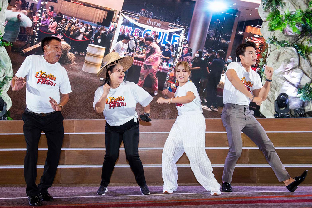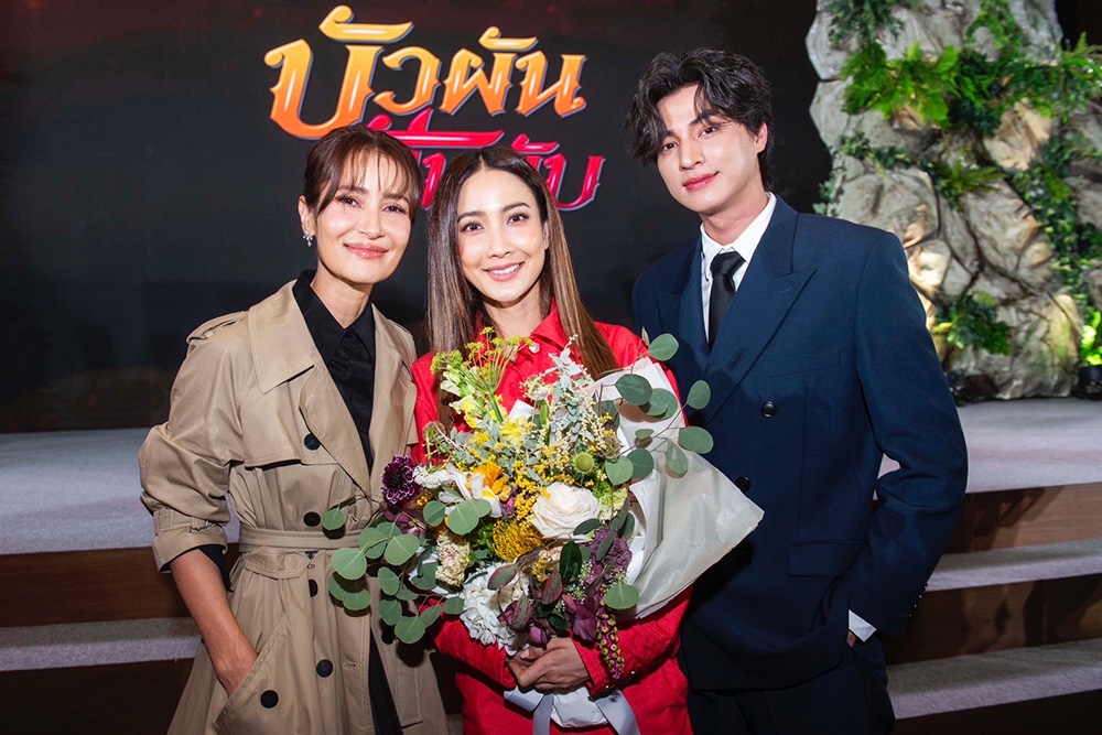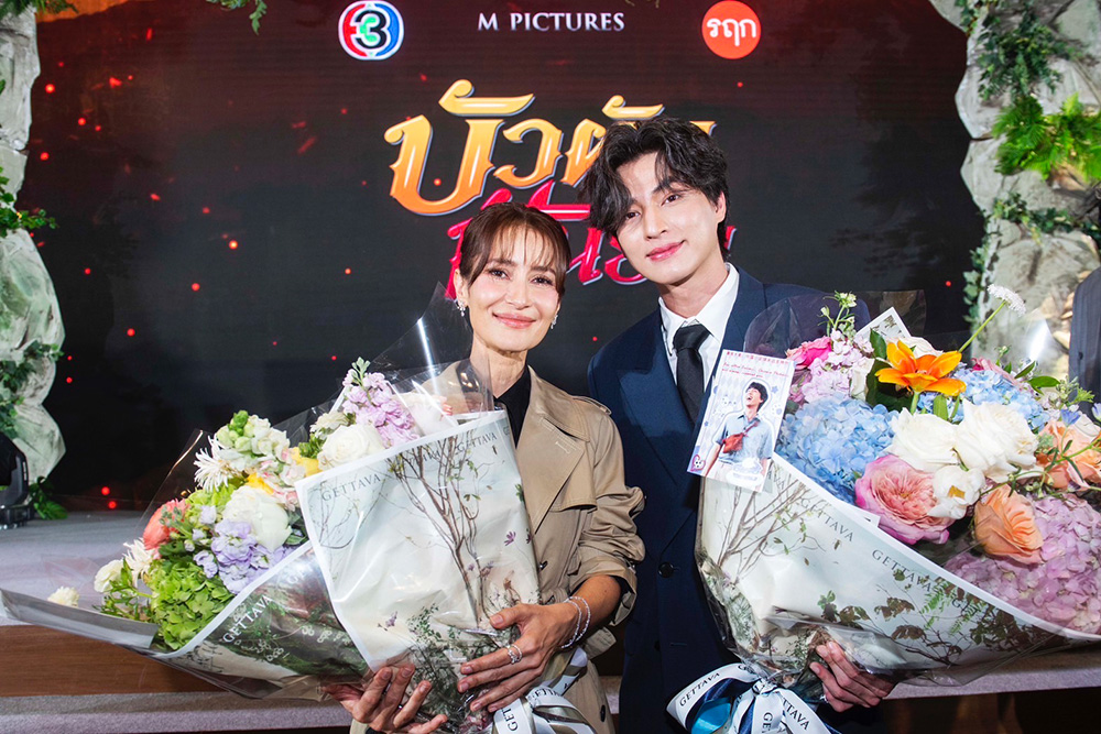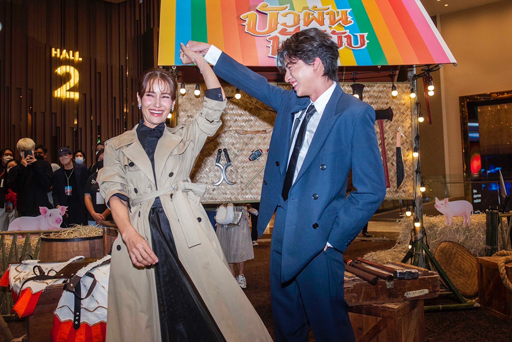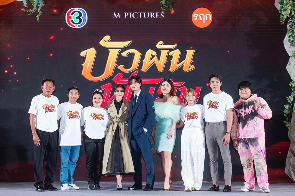 จากนั้นเรียนเชิญ “คุณสุรินทร์ กฤตยาพงศ์พันธุ์” กรรมการผู้อำนวยการ สายธุรกิจโทรทัศน์ บริษัท บีอีซี เวิลด์ จํากัด (มหาชน) และ “คุณสุรเชษฐ์ อัศวเรืองอนันต์” ประธานเจ้าหน้าที่บริหาร บริษัท เอ็ม พิคเจอร์ส เอ็นเตอร์เทนเม้นท์ จำกัด (มหาชน) ขึ้นกล่าวพูดคุยถึงโปรเจ็กต์สุยิ่งใหญ่ส่งท้ายปีของ ภาพยนตร์ “บัวผันฟันยับ” ในครั้งนี้
