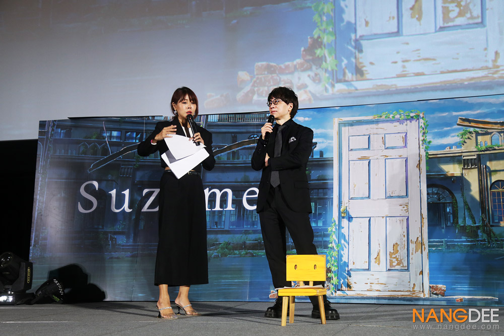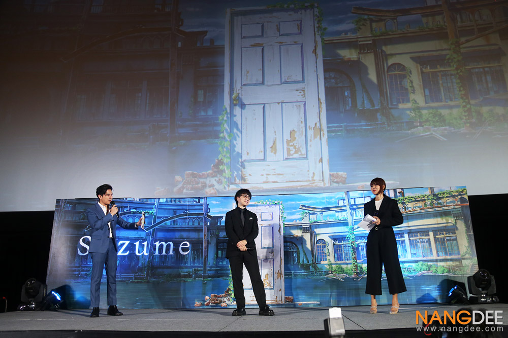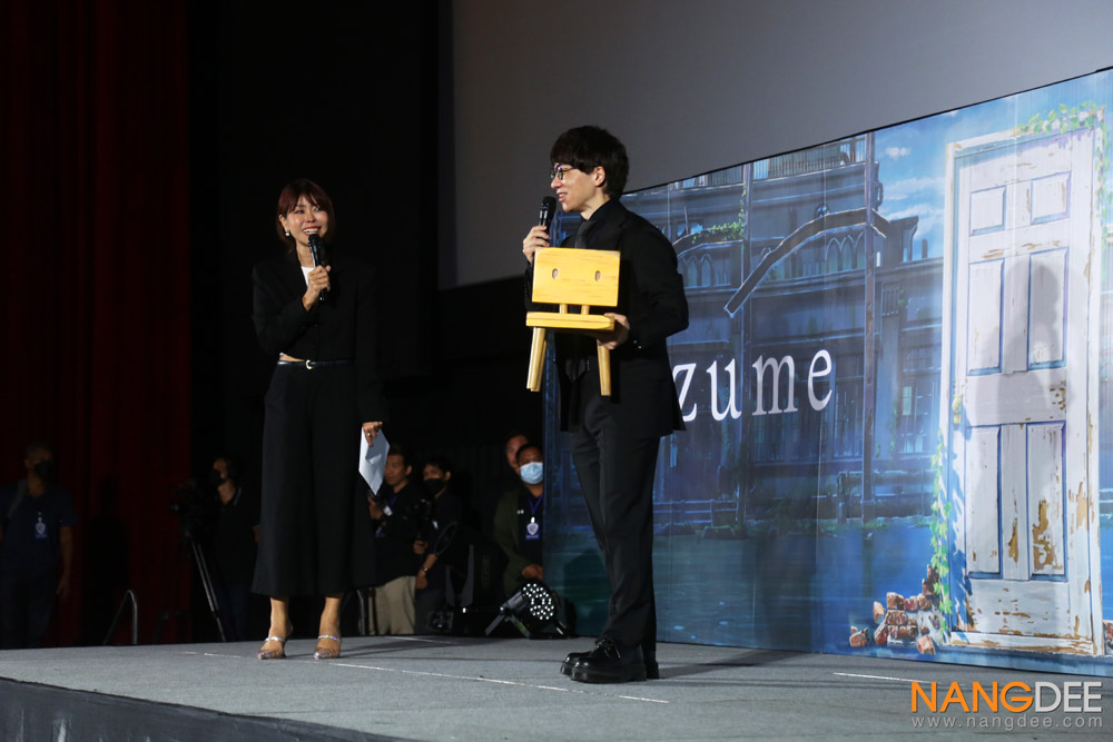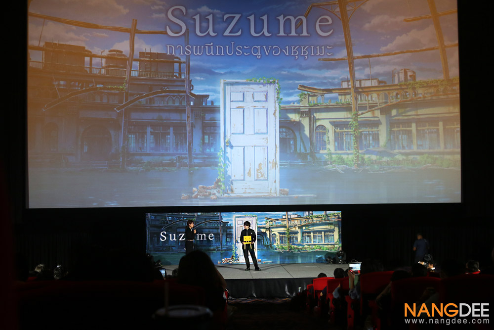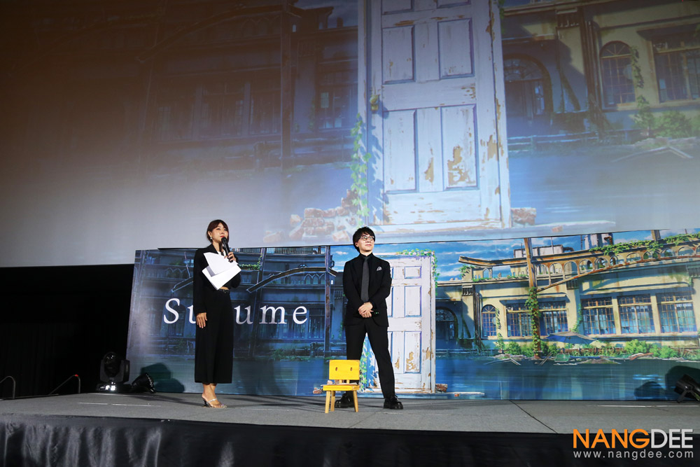 จบไปอย่างสวยงามและน่าประทับใจเรียบร้อย สำหรับงาน Suzume Makoto Shinkai Fan Meet Screening ที่จัดขึ้นในวันที่ 11 เมษายน 2566 ที่ผ่านมา ณ โรงภาพยนตร์ สยามภาวลัย ซึ่งแฟน ๆ ได้พบกับ “มาโกโตะ ชินไค” ผู้กำกับแอนิเมชั่นชั้นครูที่โด่งดังตราตรึงในใจอย่าง Your Name และ Weathering with You ที่เดินทางมายังประเทศไทยเพื่อโปรโมตผลงานชิ้นใหม่ “Suzume - การผนึกประตูของซุซุเมะ” และร่วมพูดคุยตอบคำถามกับแฟน ๆ หลังชมภาพยนตร์รอบพิเศษจบ ทั้งยังนำเก้าอี้สามขาตัวน้อย ตัวแทนของ มุนาคาตะ โชตะ ตัวเอกของภาพยนตร์มาเกาะขอบเวทีด้วยกัน