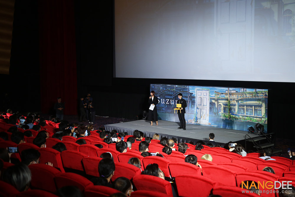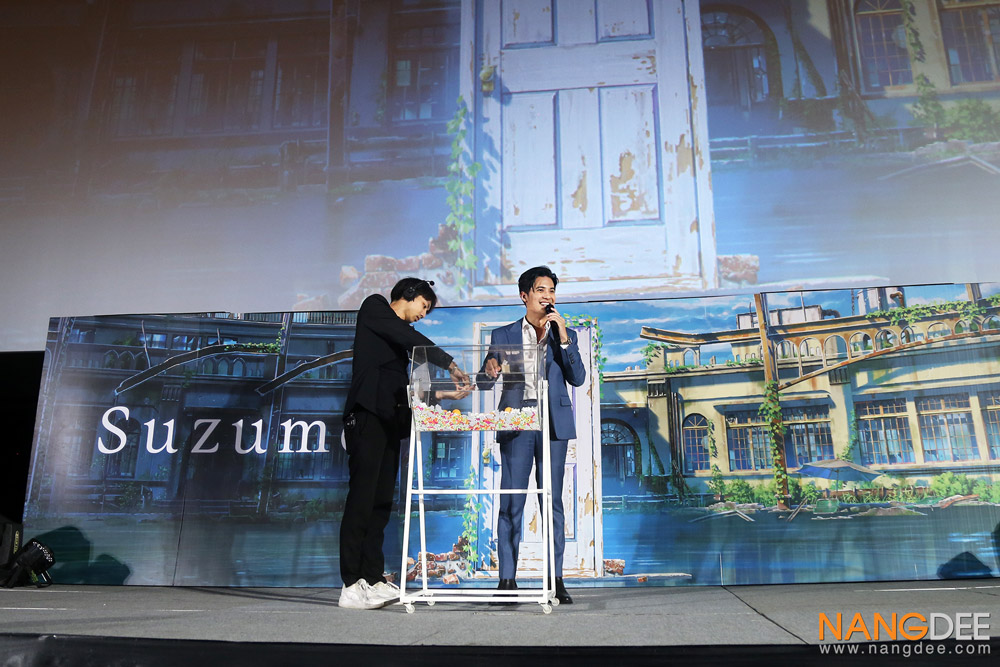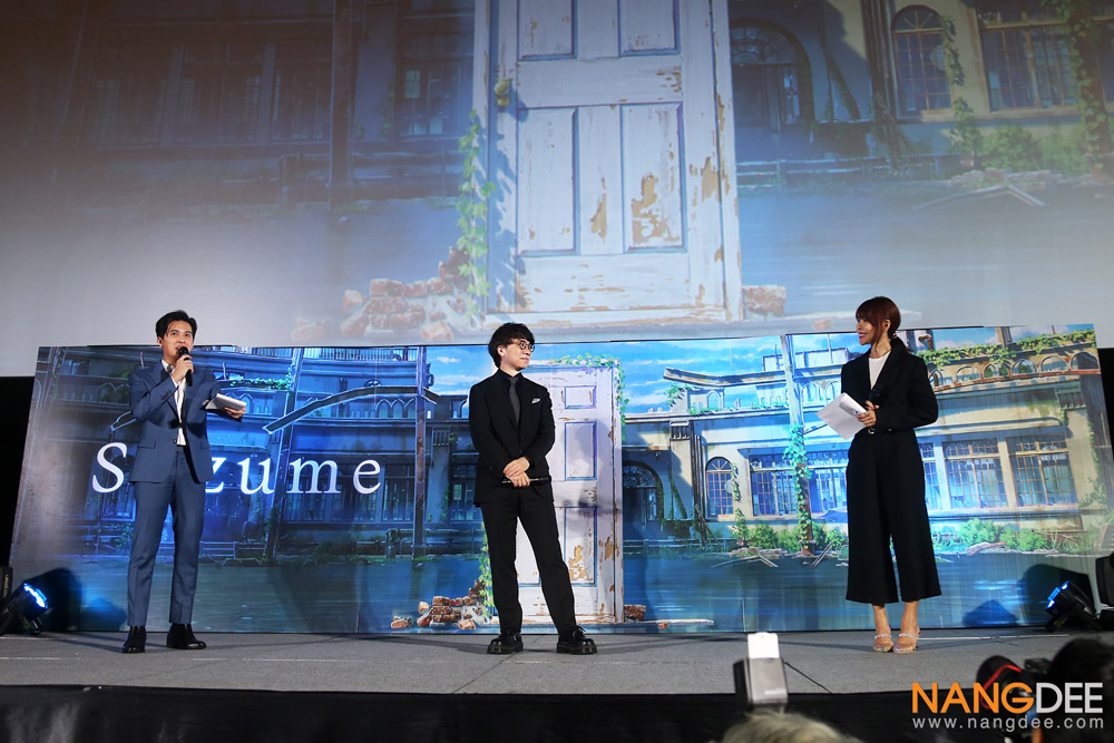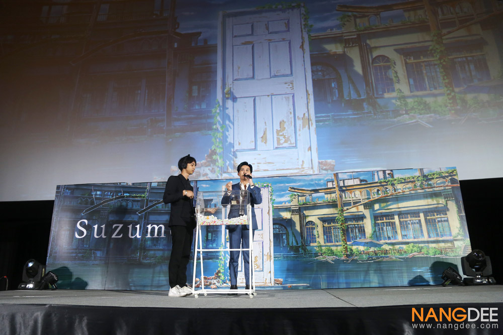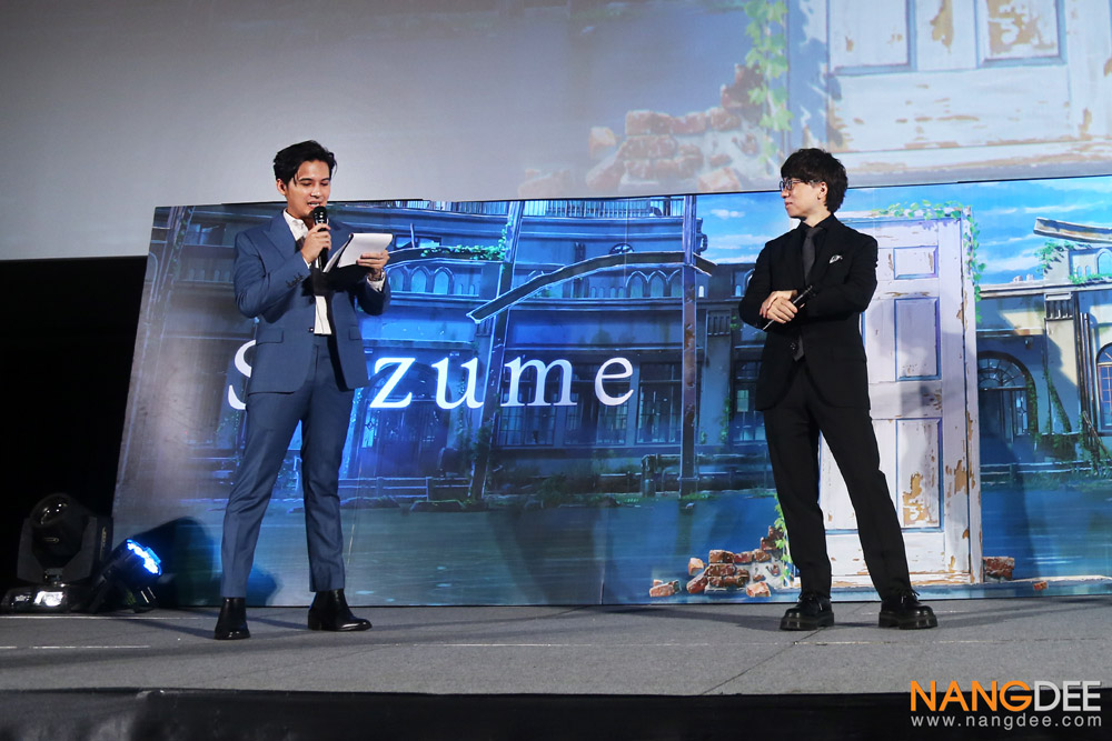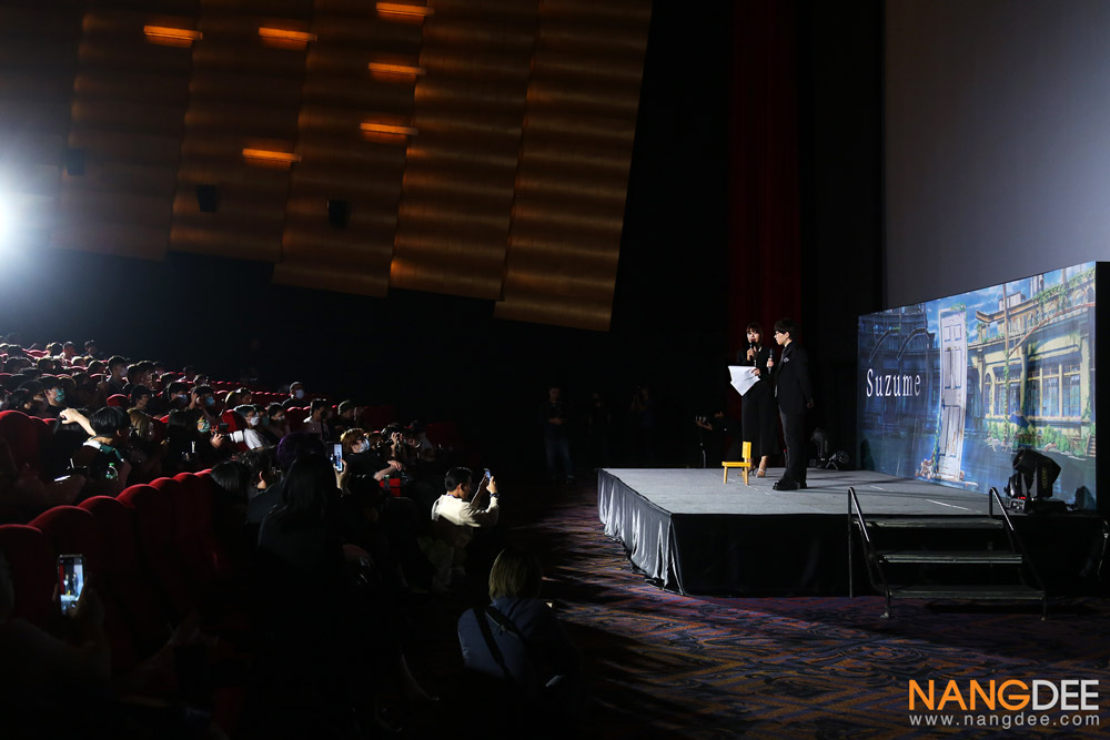จบไปอย่างสวยงามและน่าประทับใจเรียบร้อย สำหรับงาน Suzume Makoto Shinkai Fan Meet Screening ที่จัดขึ้นในวันที่ 11 เมษายน 2566 ที่ผ่านมา ณ โรงภาพยนตร์ สยามภาวลัย ซึ่งแฟน ๆ ได้พบกับ “มาโกโตะ ชินไค” ผู้กำกับแอนิเมชั่นชั้นครูที่โด่งดังตราตรึงในใจอย่าง Your Name และ Weathering with You ที่เดินทางมายังประเทศไทยเพื่อโปรโมตผลงานชิ้นใหม่ “Suzume - การผนึกประตูของซุซุเมะ” และร่วมพูดคุยตอบคำถามกับแฟน ๆ หลังชมภาพยนตร์รอบพิเศษจบ ทั้งยังนำเก้าอี้สามขาตัวน้อย ตัวแทนของ มุนาคาตะ โชตะ ตัวเอกของภาพยนตร์มาเกาะขอบเวทีด้วยกัน