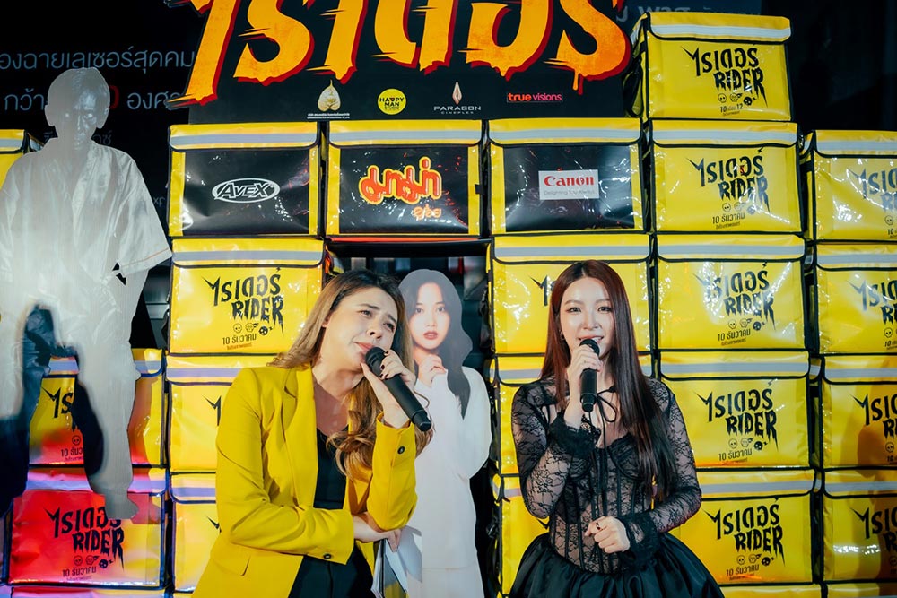 และที่ขาดไม่ได้คือผู้สนับสนุนหลักของภาพยนตร์ "บริษัท สหพัฒนพิบูล จำกัด ผลิตภัณฑ์บะหมี่กึ่งสำเร็จรูปตรามาม่า มาม่าอร่อย" ที่มาร่วมเปิดบูทเสิร์ฟความหอมอร่อยกันถึงในงาน และผู้ร่วมสนับสนุนภาพยนตร์ ได้แก่ "บริษัท ป.ณรงค์ แอนด์ พี.เอ็น.ไอ จำกัด" กับหมวกกันน็อกรุ่นพิเศษ Avex X Rider ลิมิเต็ดคอลเล็กชัน, "บริษัท แคนนอน มาร์เก็ตติ้ง (ไทยแลนด์) จํากัด" และ "ยาดมโฮเล่น" กับสมุนไพรหอมฮีลใจ HOLEN X ไรเดอร์ อโรมาดม