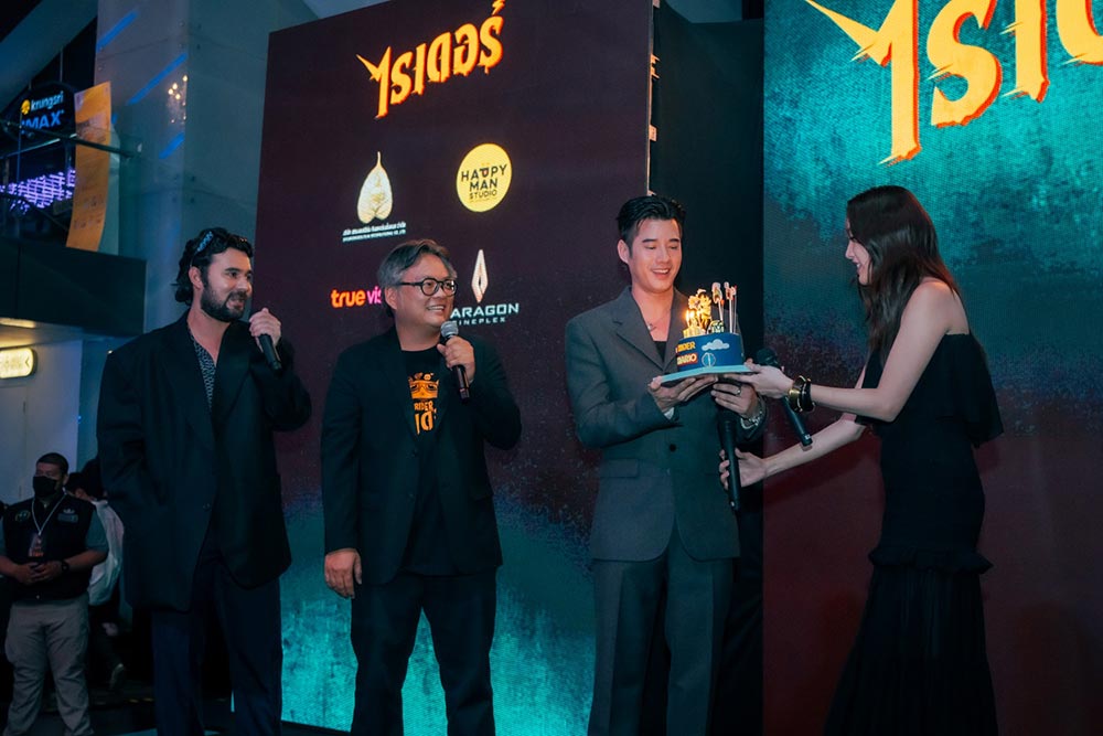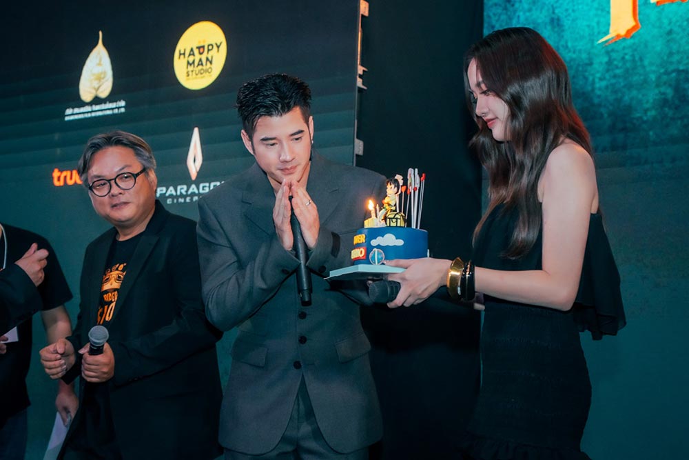 และก่อนไปชมภาพยนตร์ก็มีออเดอร์พิเศษส่งตรงถึงบนเวทีกับเค้กเซอร์ไพรส์วันเกิดย้อนหลังให้กับไรเดอร์สุดหล่อมาริโอ้ เมาเร่อ โดยผู้ร่วมงานได้ร้องเพลง Happy Birthday อวยพรหนุ่มโอ้ร่วมกันอย่างอบอุ่น