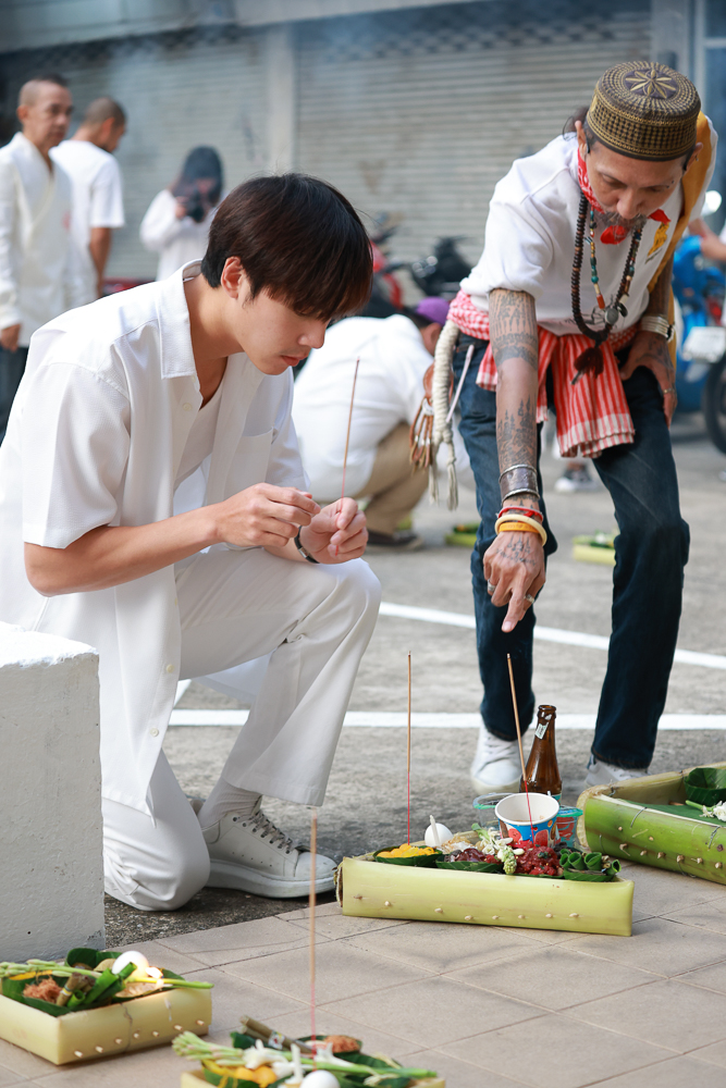 โดยพิธีนี้ถือเป็นความเชื่อโบราณทางภาคเหนือ เป็นการบูชาแสดงความเคารพเทพเทวดาและใช้เป็นเครื่องเซ่นให้กับดวงวิญญาณหรือสิ่งที่มองไม่เห็น พร้อมด้วยดอกซ่อนกลิ่นที่มีความหอมเป็นอย่างมากในเวลากลางคืน ซึ่งจุดประสงค์ในการจัดพิธีครั้งนี้ของทางทีมงานเป็นไปเพื่อให้การถ่ายทำภาพยนตร์เป็นไปอย่างราบรื่นและสำเร็จ