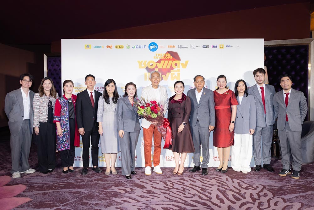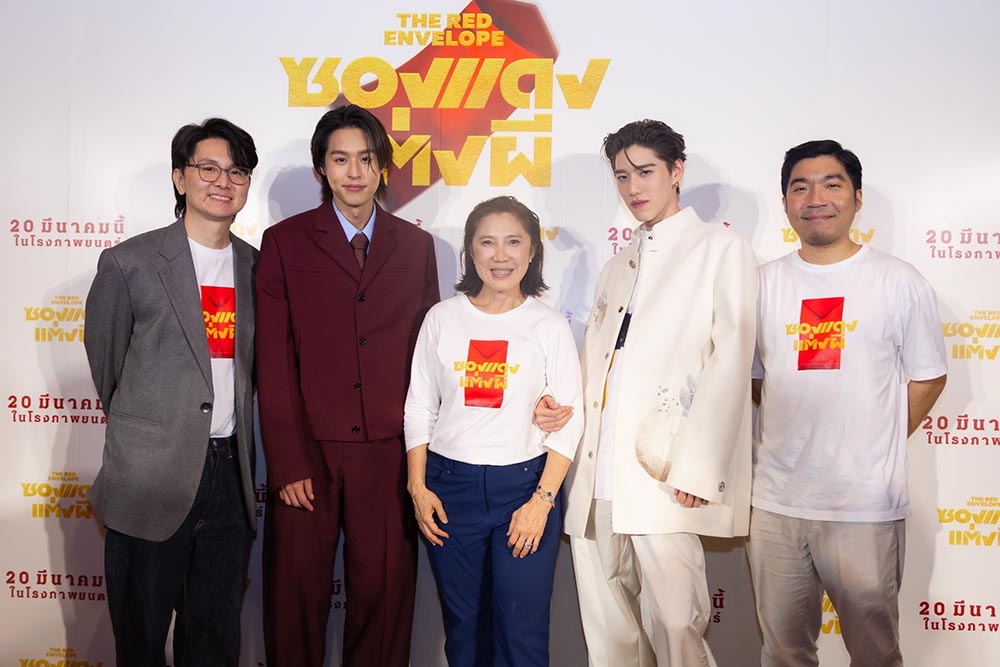 ต่อด้วยทีมนักแสดง ก้อย, แม่ปุ๊, รัศมีแข, บอลชอน และผู้กำกับ หมู ชยนพ พร้อมด้วย โปรดิวเซอร์ โต้ง บรรจง ขึ้นเวทีมาร่วมพูดคุยถึงบรรยากาศ เบื้องหลังการถ่ายทำที่อัดแน่นไปด้วยอรรถรสความบันเทิงเกินบรรยาย พร้อมกับเผยถึงความน่าสนใจของหนังเรื่องนี้ ที่ความสนุกครบรสมีเสิร์ฟให้คนดูแบบไม่อั้น ปิดท้ายงาน โดยมีคุณจินา โอสถศิลป์ ประธานเจ้าหน้าที่บริหาร บริษัท จีดีเอช ห้าห้าเก้า จำกัด, ทีมผู้บริหารจาก Billkin Entertainment และ PP Krit Entertainment รวมถึง พาร์ทเนอร์, ผู้กำกับฯ, โปรดิวเซอร์ และทีมนักแสดง รวมทั้งขอขอบคุณกรมส่งเสริมวัฒนธรรม กระทรวงวัฒนธรรม โดยได้รับเกียรติจาก คุณสุดาวรรณ ศุภกิจโกศล รัฐมนตรีว่าการกระทรวงวัฒนธรรม และคุณประสพ เรียงเงิน ปลัดกระทรวงวัฒนธรรม มาร่วมเป็นกำลังใจ สนับสนุนภาพยนตร์ ซอฟเพาเวอร์ด้านภาพยนตร์ของไทย และเชิญชวนคนไทยมาดูหนัง 'ซองแดงแต่งผี' ในค่ำคืนนี้ด้วย
