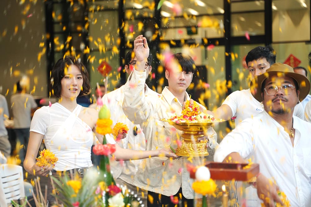 ร่วมด้วยทีมผู้บริหาร "เตือนใจ เตชะรัตนประเสริฐ" รองประธานกรรมการ บริษัท สหมงคลฟิล์ม อินเตอร์เนชั่นแนล จำกัด, "อวิกา เตชะรัตนประเสริฐ" รองประธานกรรมการฝ่ายการตลาด, "จาตุศม เตชะรัตนประเสริฐ" รองประธานกรรมการฝ่ายสื่อสารการตลาด และโปรดิวเซอร์ภาพยนตร์, "ชมศจี เตชะรัตนประเสริฐ" รองประธานกรรมการฝ่ายขาย รวมถึงทีมงานเบื้องหลังภาพยนตร์ที่เข้าร่วมพิธีกันอย่างพร้อมเพรียง